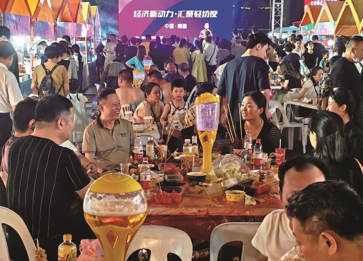 七月六日晚,持续十五天的崇川区和平桥街道华东轻纺市场首届“经济新动力 汇聚轻纺夜”夜市活动拉开帷幕。龙虾、啤酒、各地美食齐备。众多游乐项目吸引市民前来“逛吃”、找乐。李斌