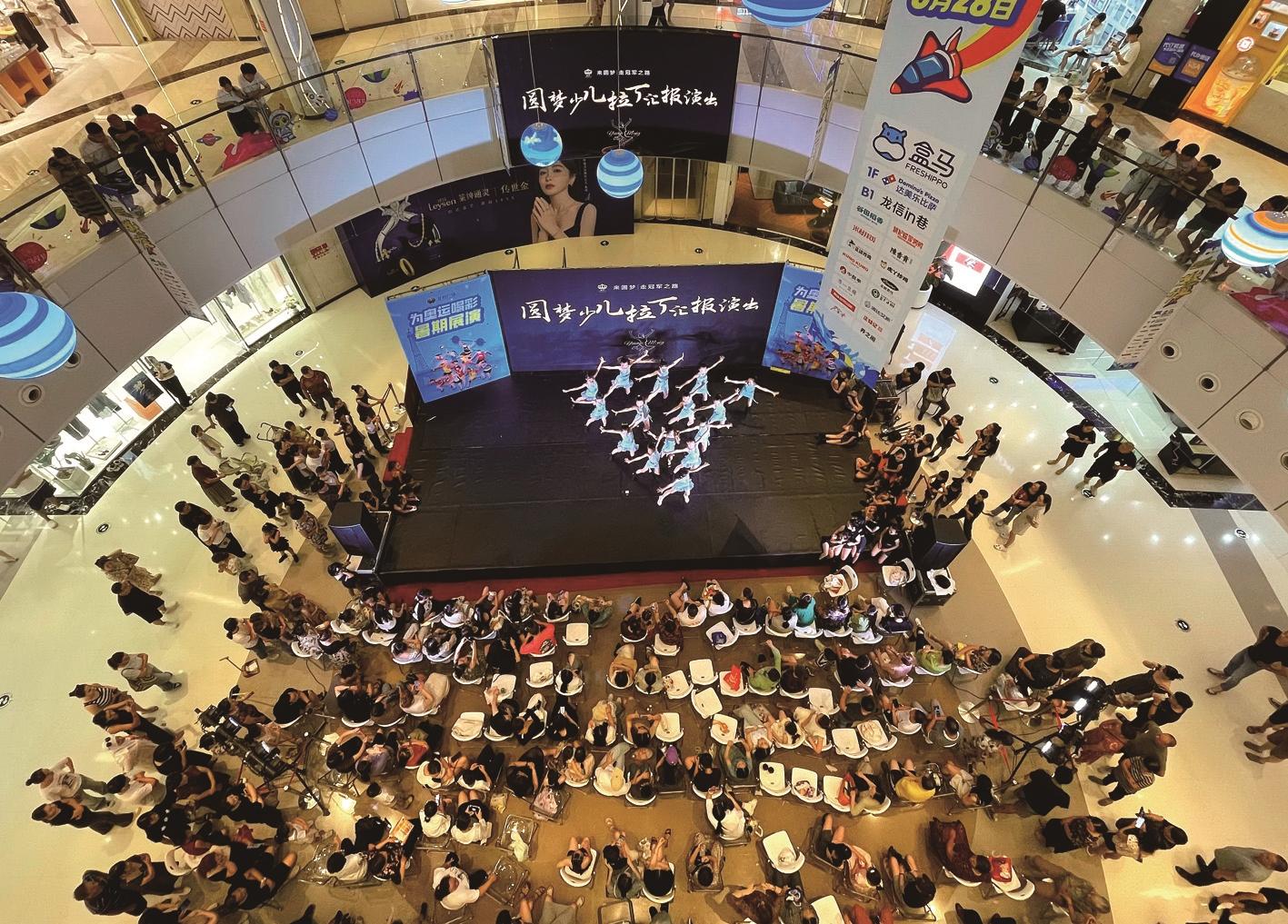 7月28日,海门区龙信广场,纳凉市民在商场观看少儿拉丁舞表演。 施敏