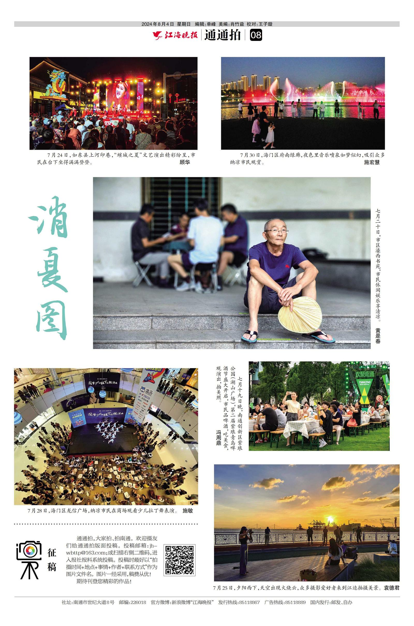 通通拍,大家拍、拍南通。欢迎摄友们给通通拍版面投稿。投稿邮箱:jhwbttp@163.com;或扫描二维码,进入报社报料系统投稿。投稿时最好以“拍摄时间+地点+事情+作者+联系方式”作为图片文件名。图片一经采用,稿费从优!