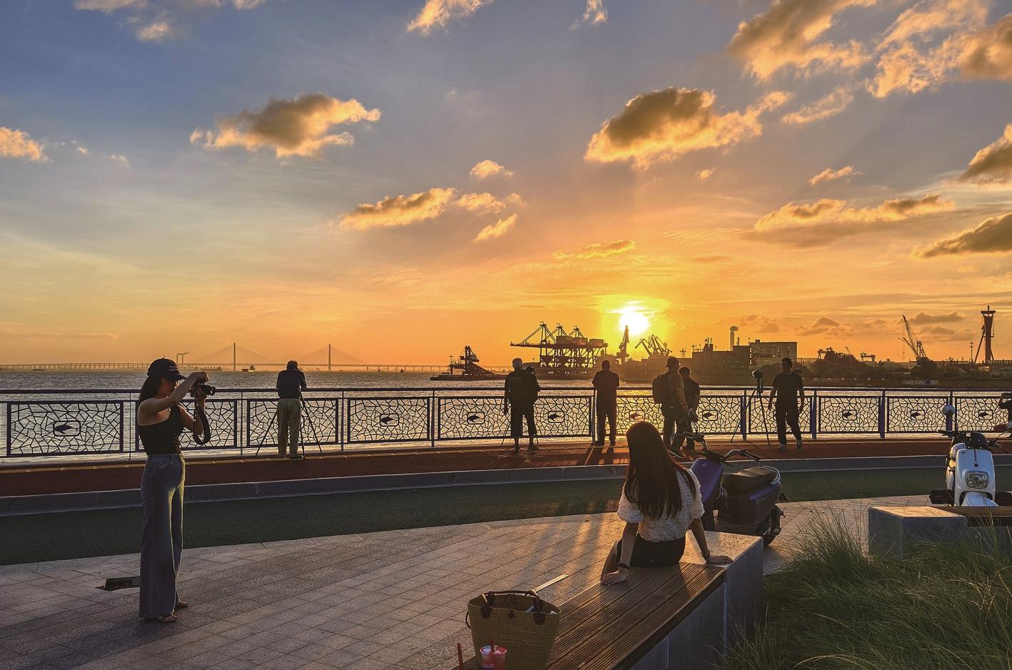 7月25日,夕阳西下,天空出现火烧云,众多摄影爱好者来到江边拍摄美景。袁德君