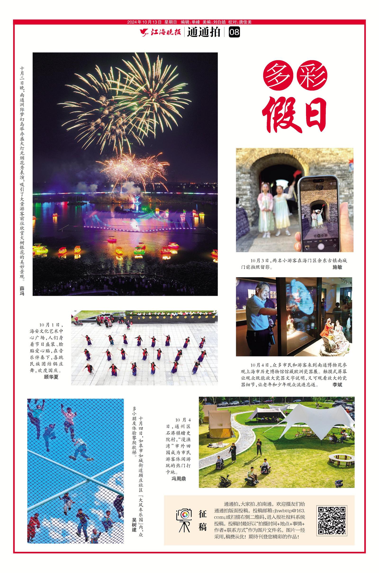通通拍,大家拍、拍南通。欢迎摄友们给通通拍版面投稿。投稿邮箱:jhwbttp@163.com;或扫描二维码,进入报社报料系统投稿。投稿时最好以“拍摄时间+地点+事情+作者+联系方式”作为图片文件名。图片一经采用,稿费从优!期待刊登您精彩的作品!