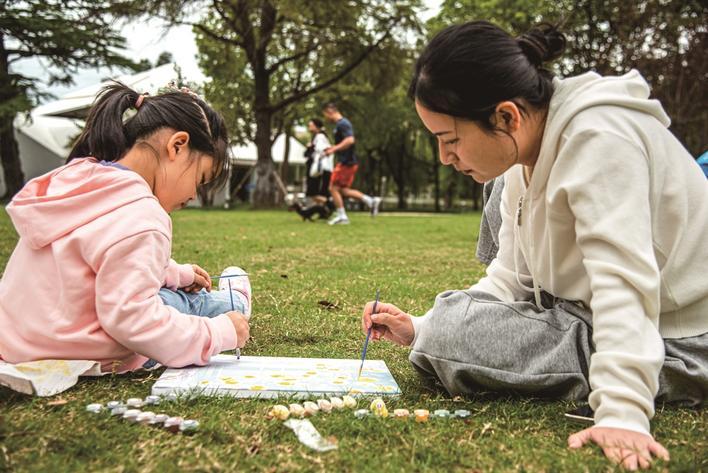 10月1日,市区文峰公园,家长陪孩子画画。黄平华