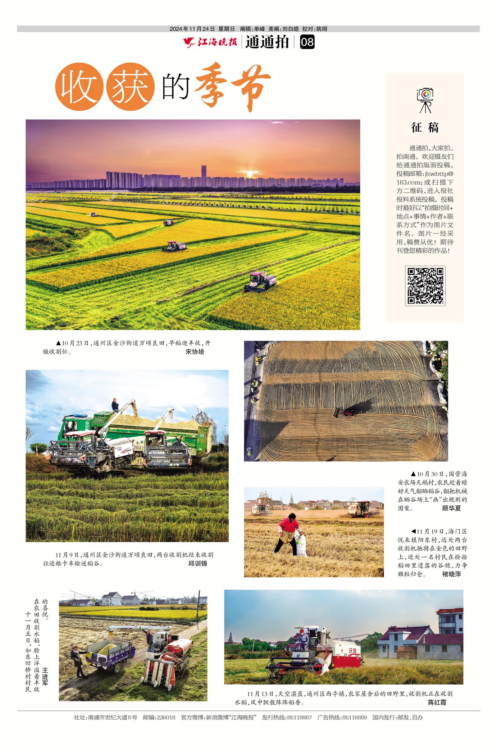 通通拍,大家拍、拍南通。欢迎摄友们给通通拍版面投稿。投稿邮箱:jhwbttp@163.com;或扫描下方二维码,进入报社报料系统投稿。投稿时最好以“拍摄时间+地点+事情+作者+联系方式”作为图片文件名。图片一经采用,稿费从优!期待刊登您精彩的作品!