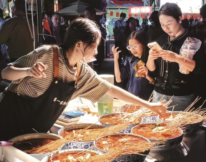 10月5日,市区环西文化广场夜市游人如织,美食热销。瞿德均