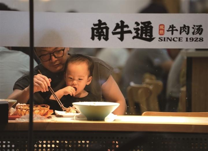 10月18日,通州区某商场饮食区,一个孩子坐在家长身前,吃得津津有味。袁建