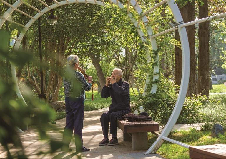 10月30日清晨,市区文峰公园,两名老人在园中合奏,乐曲悠扬,时光美好。陈鲁明