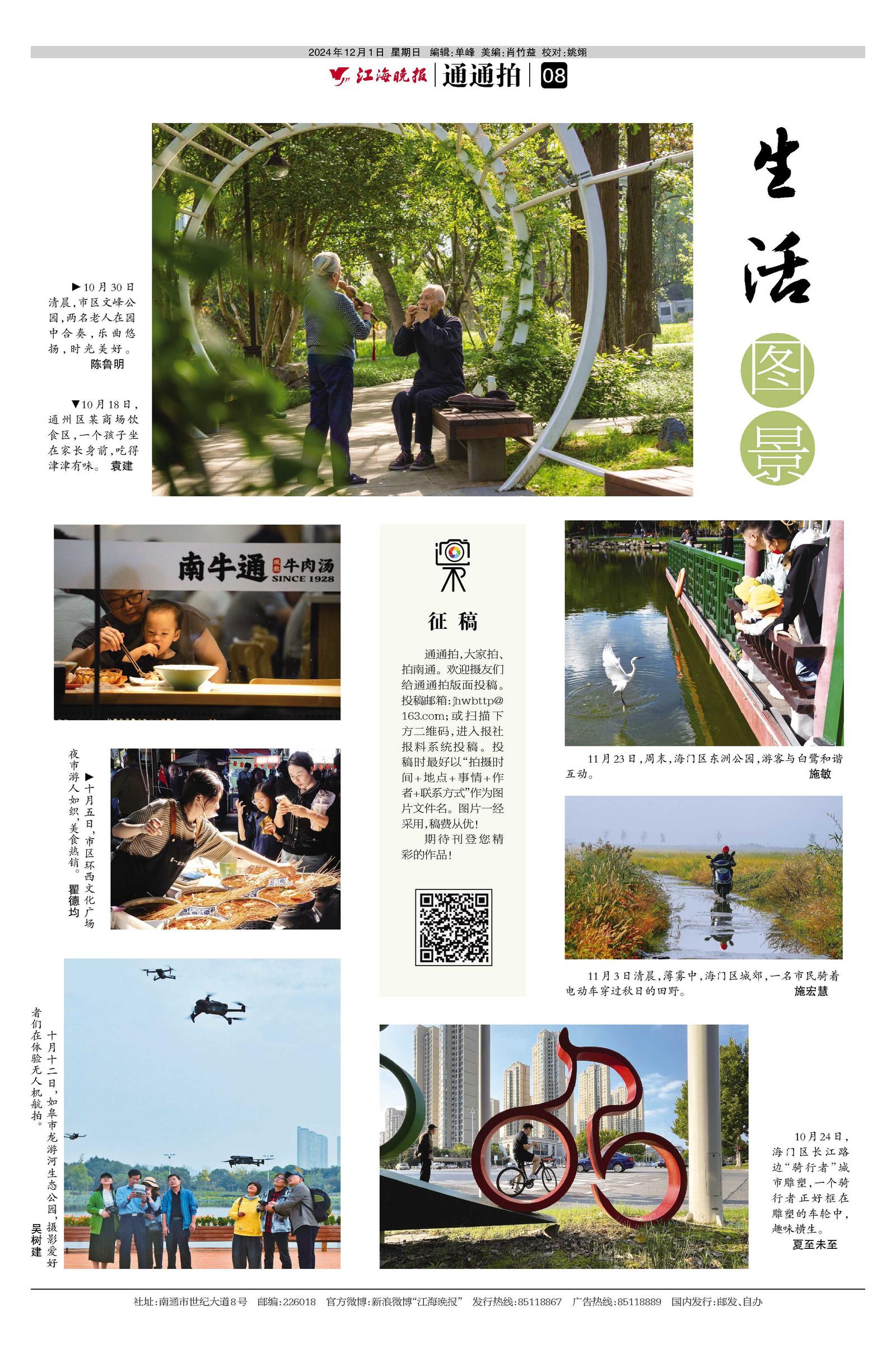 通通拍,大家拍、拍南通。欢迎摄友们给通通拍版面投稿。投稿邮箱:jhwbttp@163.com;或扫描下方二维码,进入报社报料系统投稿。投稿时最好以“拍摄时间+地点+事情+作者+联系方式”作为图片文件名。图片一经采用,稿费从优!期待刊登您精彩的作品!