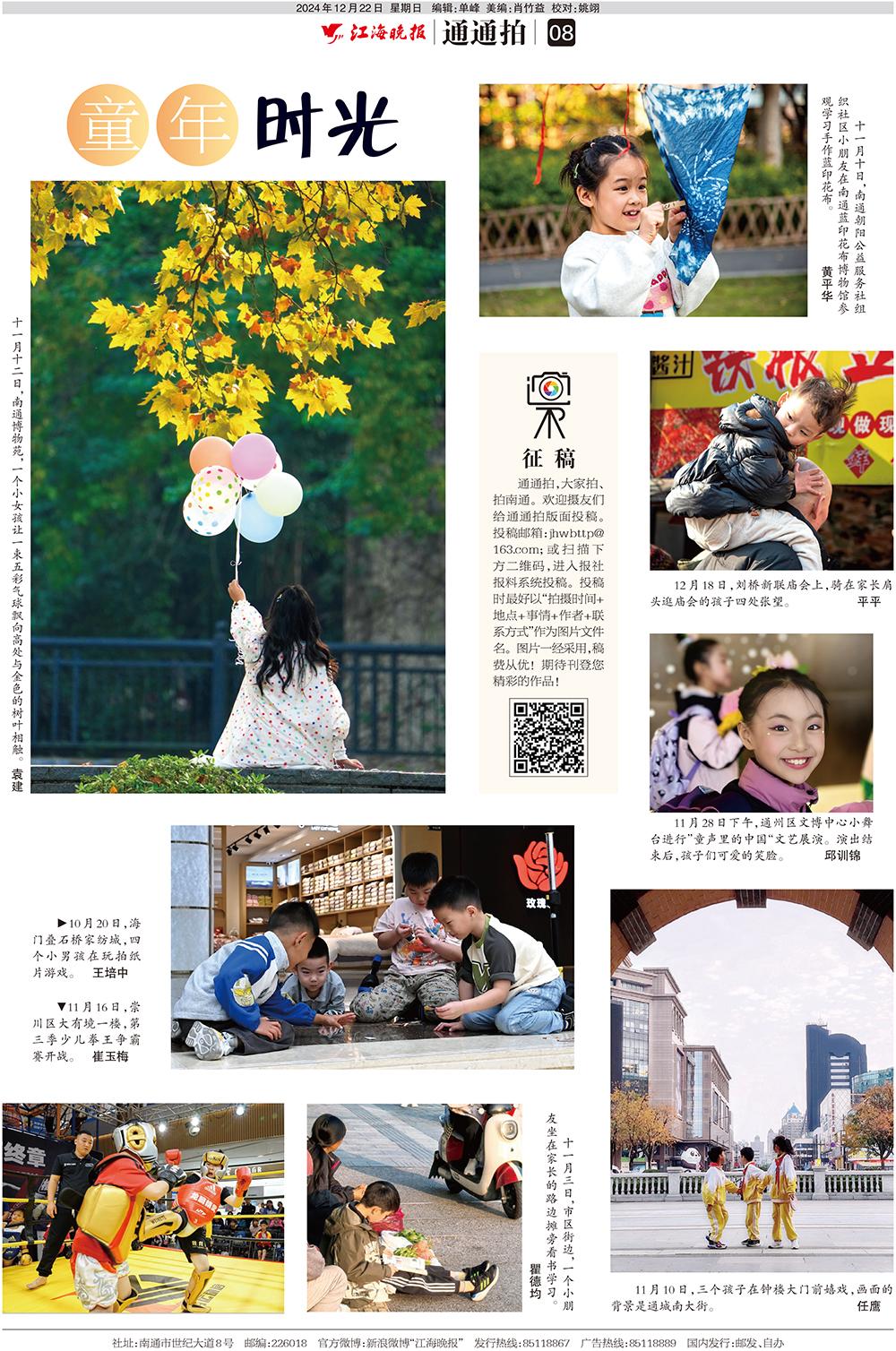 通通拍,大家拍、拍南通。欢迎摄友们给通通拍版面投稿。投稿邮箱:jhwbttp@163.com;或扫描二维码,进入报社报料系统投稿。投稿时最好以“拍摄时间+地点+事情+作者+联系方式”作为图片文件名。图片一经采用,稿费从优!期待刊登您精彩的作品!