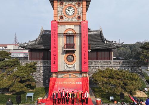 ‘5, 4, 3, 2, 1, unveil the couplets!’ On the morning of 20th January, as the red silk fell slowly, the magnificent 12-meter-long giant Spring Festival Couplets on Nantong Bell Tower revealed its true form. At the same time, 8-meter-long giant Spring Festival Couplets were hung up at the south gate of Langshan Mountain.