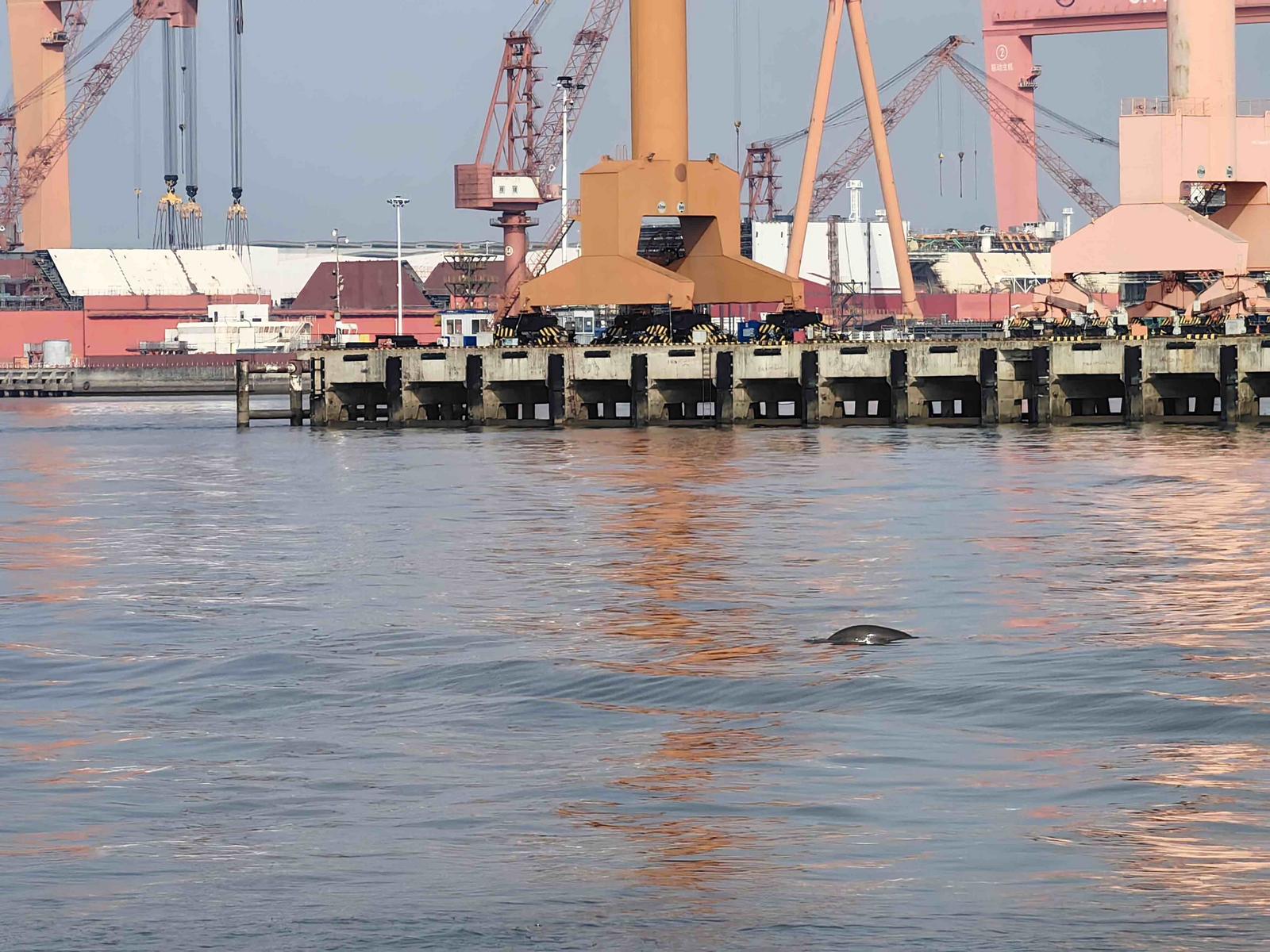 2月4日,南通海事局工作人员在招商重工海门工业基地和海太汽渡附近水域巡航时,拍摄到江豚嬉戏的画面。