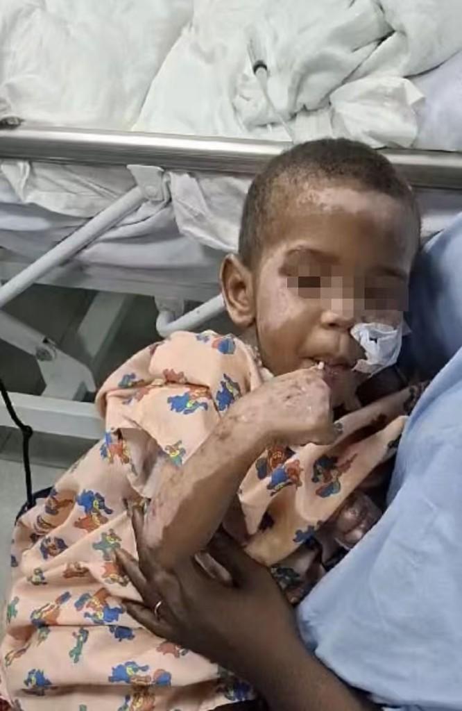 去年11月,因家中意外失火,卡洛斯全身33.5%面积的皮肤被烧伤。为此,援外医疗队队员、南通市第一人民医院烧伤科副主任医师龚振华第一时间和乔治敦公立医院的医生组成8人救治团队,通过多科协作,对患儿开展了全面救治。