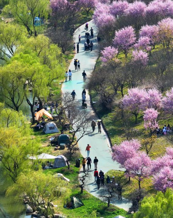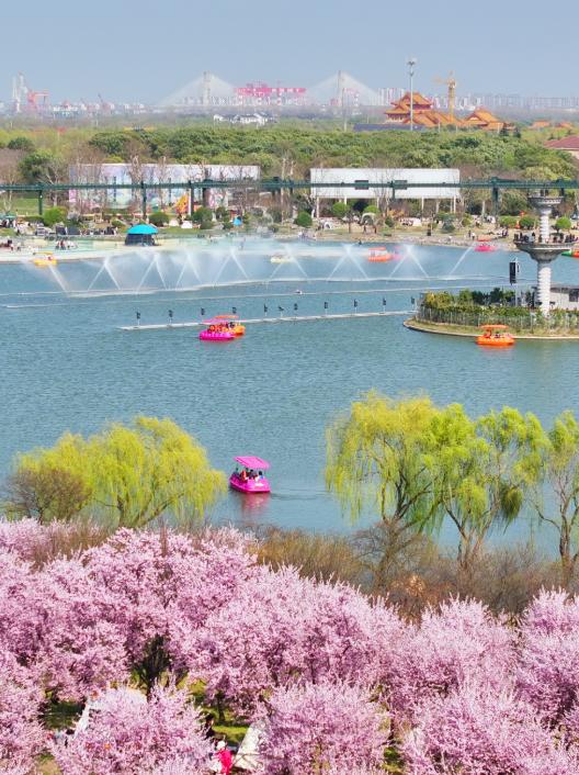 On 22nd March, many tourists visited the Intercontinental Dream Island located in Wujie Town, Tongzhou, enjoying the beautiful spring scenery.