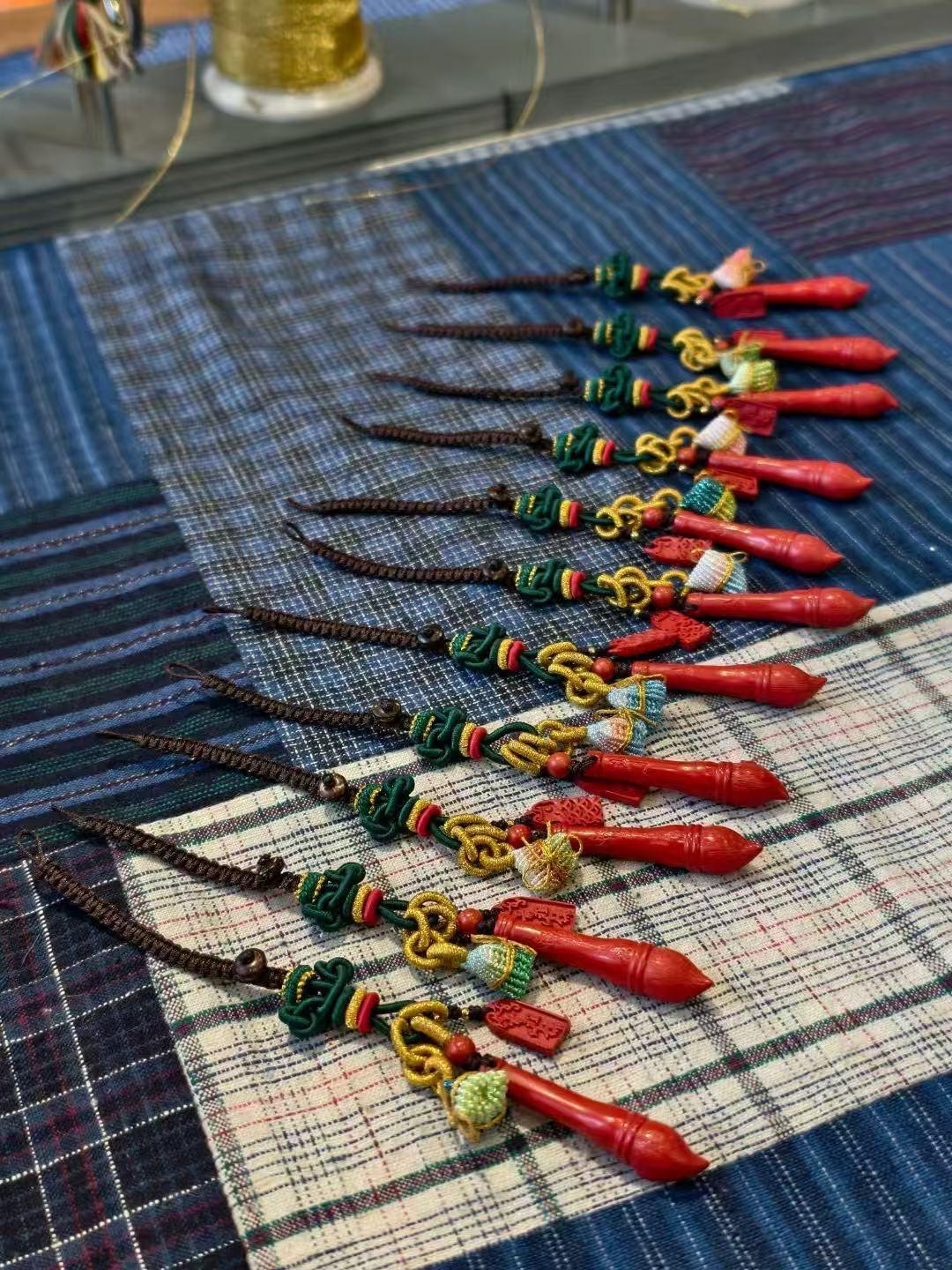 随着线上渠道的打开,绳结技艺的生命力在国内市场得到充分验证。高考季,承载着“金榜题名”期许的特色绳结,一周内销量轻松突破五六百件;端午前夕,百份定制“开光”礼盒整装待发,将传统节庆的祝福送往千家万户。线上线下渠道合力,日均销量稳定在百余件。
