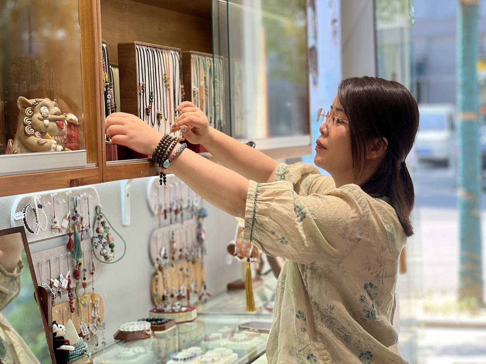 当前,她创立的“原料+培训+回收”加盟模式,4500名学员遍布新疆克拉玛依、海南、云南、山东、河南等地,其中170余人成长为能独立创作的匠人,南京、延吉、上海也已开设了实体加盟店。