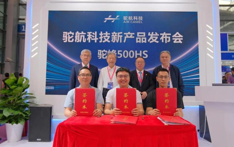 At the 9th Drone World Congress held recently, Air Camel Technology officially launched Hump 500HS tandem heavy-load unmanned helicopter, and signed a sales order of 30 units and a purchase order of 20 engines on the spot.