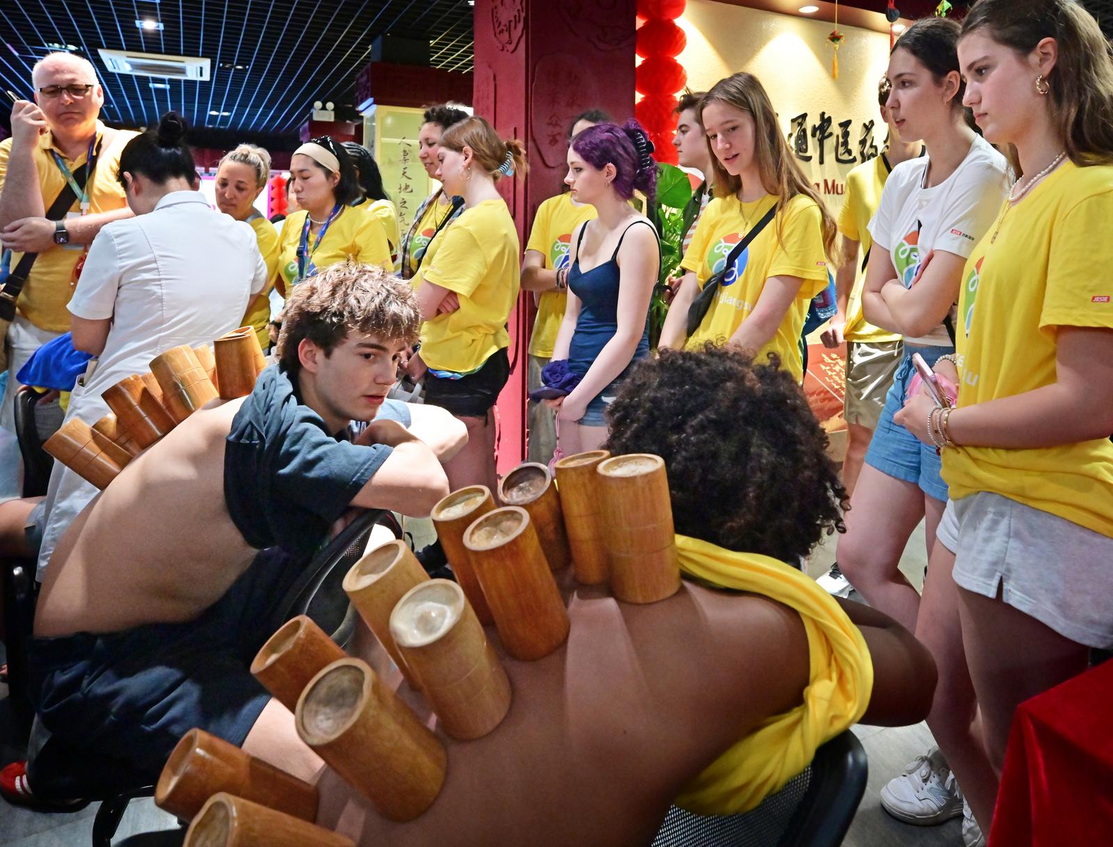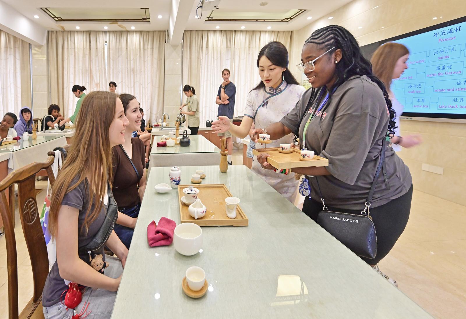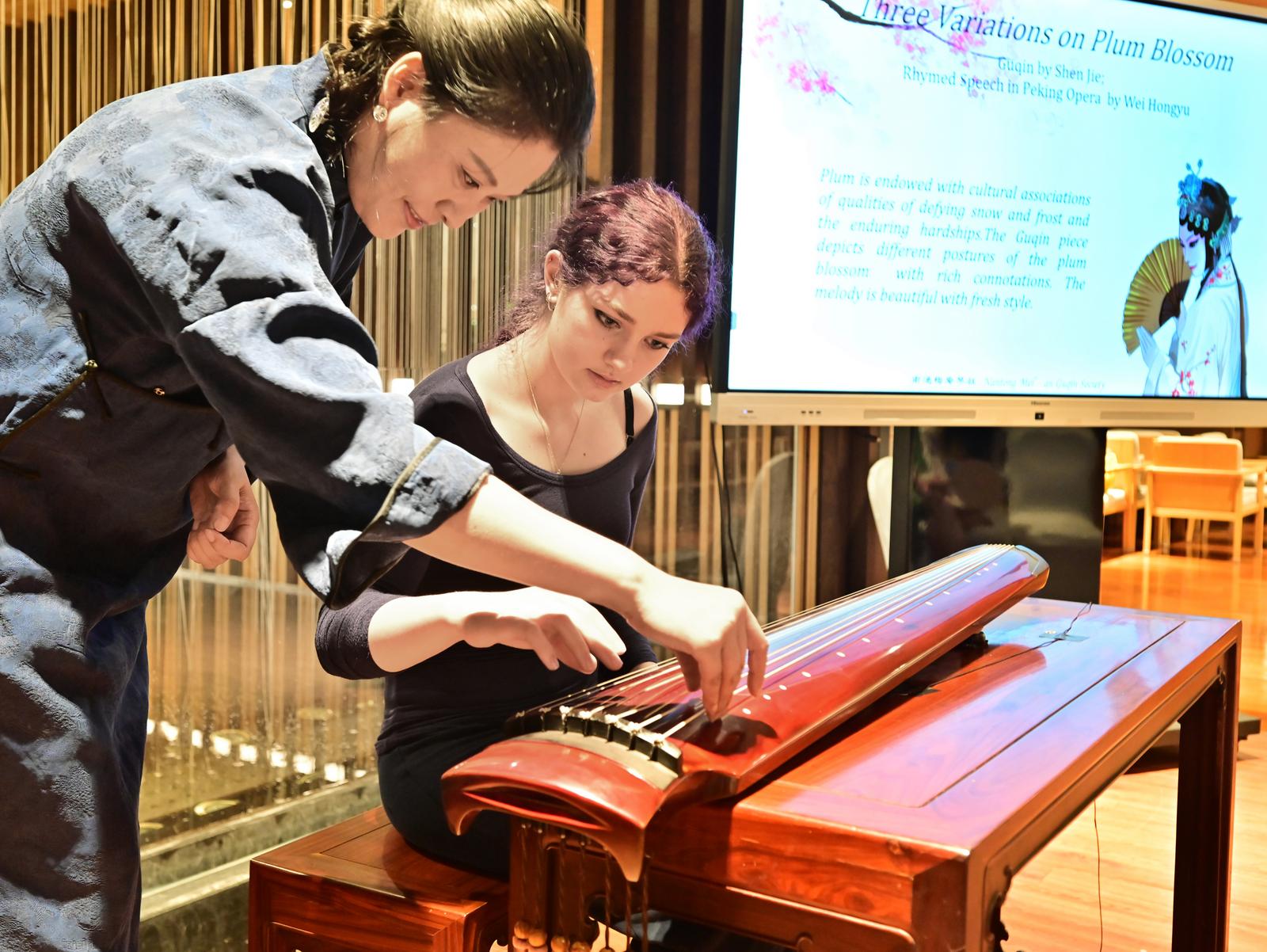 6月20日上午,美国中学生代表团在南通大学开启了一场别开生面的中国文化体验之旅。在艺术剧院内,古筝、古琴的悠扬旋律让美国师生们沉醉其中,不少人闭目凝神,用心感受这些中国传统乐器的独特韵味,这是他们第一次近距离领略中国古典音乐的魅力。