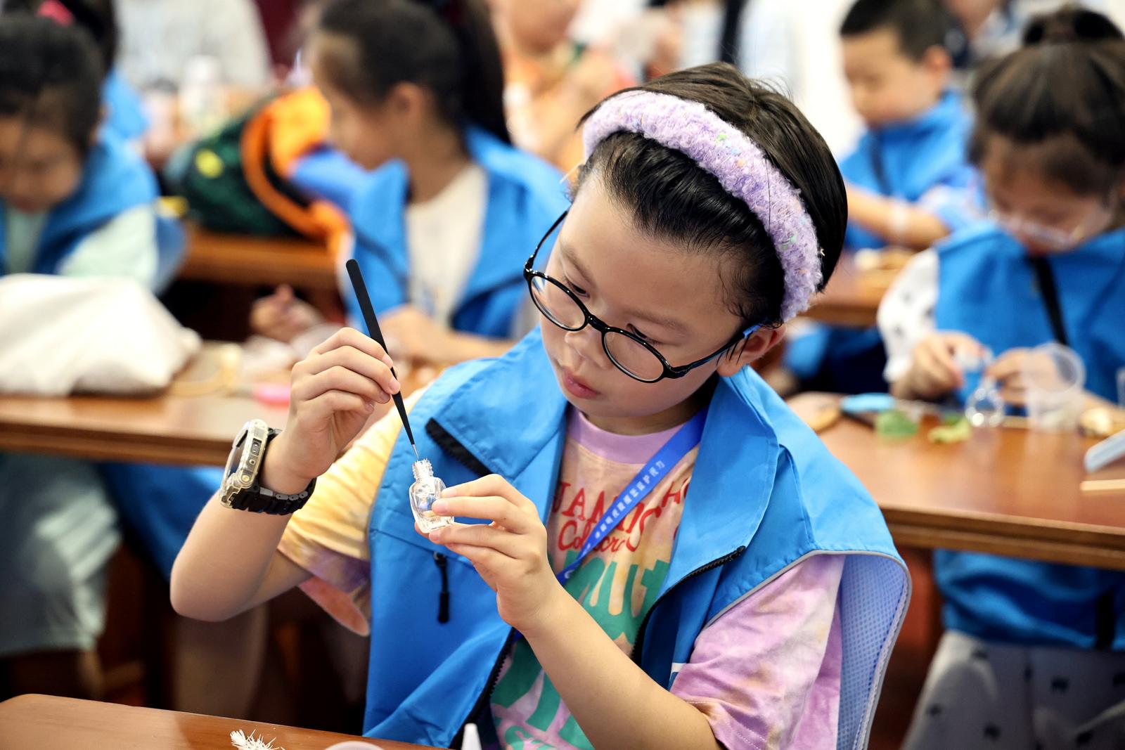 活动中,小记者们还化身“小小调香师”,在老师的悉心指导下,按“确定设计造型、放置调整花材、滴入精油、盖盖倒置、木盖扩香”五个步骤,亲手制作浮游花香薰瓶。缕缕幽香萦绕在教室内,令人心旷神怡。此次活动将自然科学和历史文化知识融入趣味实践,让小记者们不仅学会“识香”,还亲手“制香”,全方位品味大自然的香韵。“这种互动式的自然教育不仅让孩子们学到了知识,更培养了他们观察自然、热爱科学的精神。”一位参与活动的家长表示。