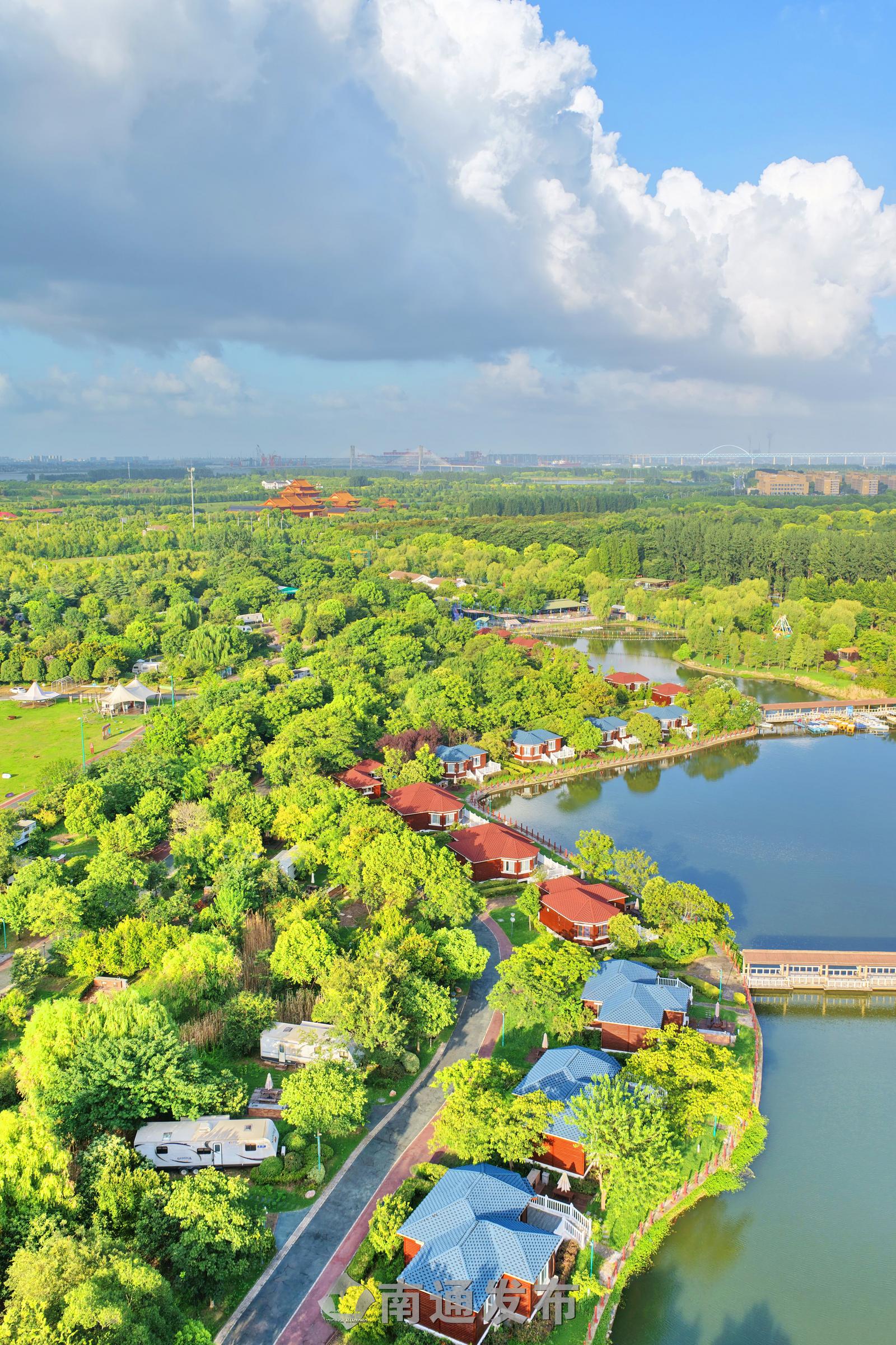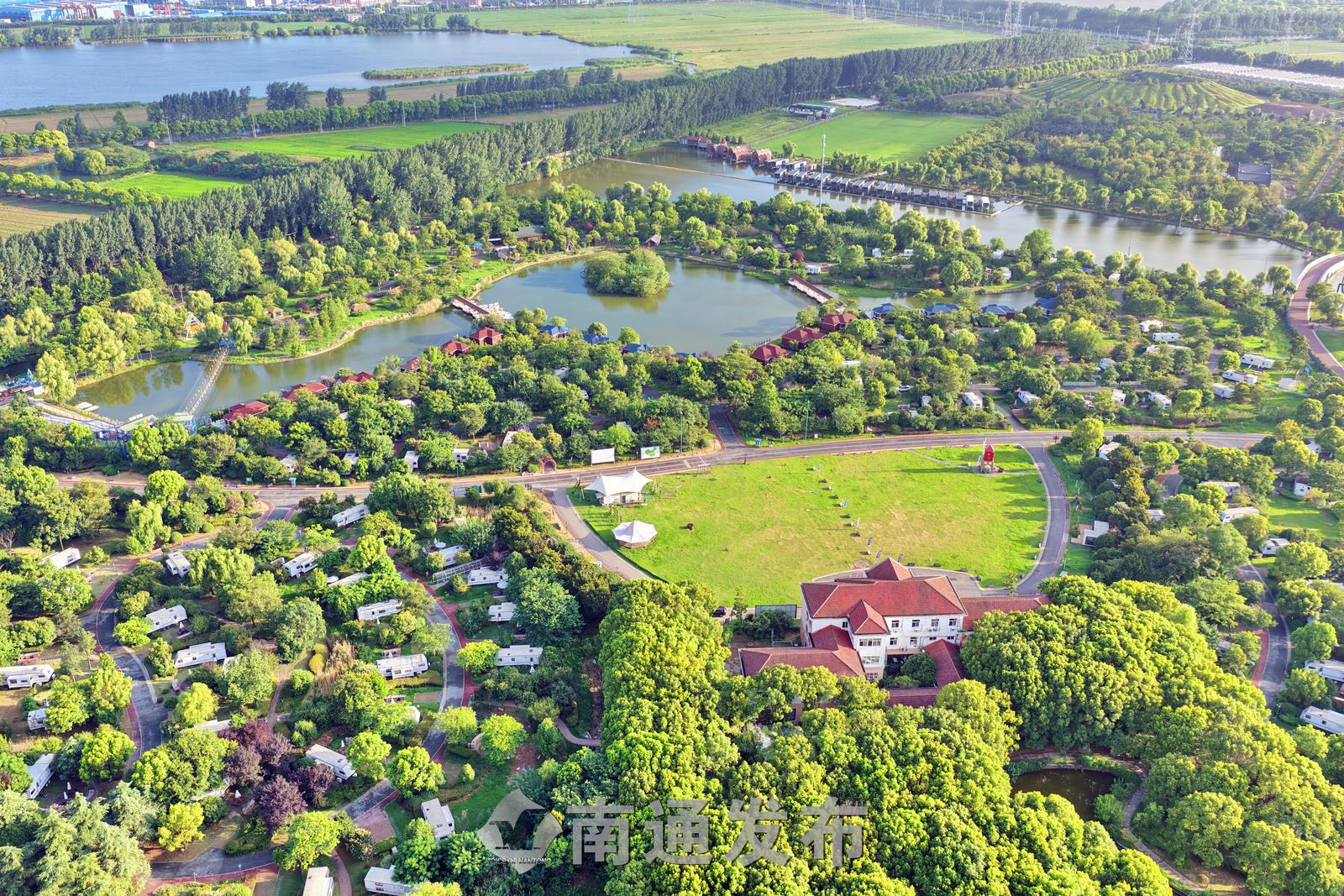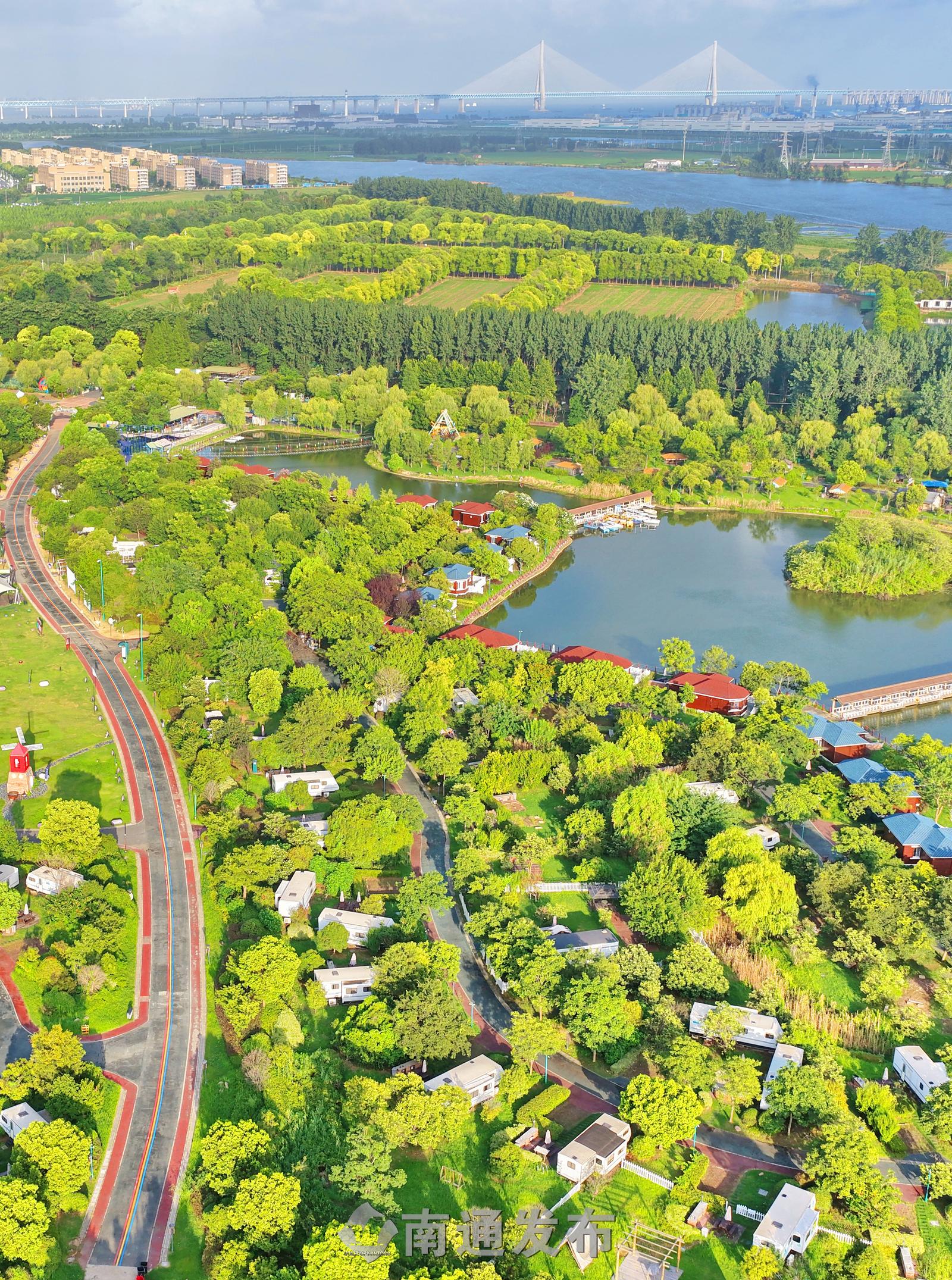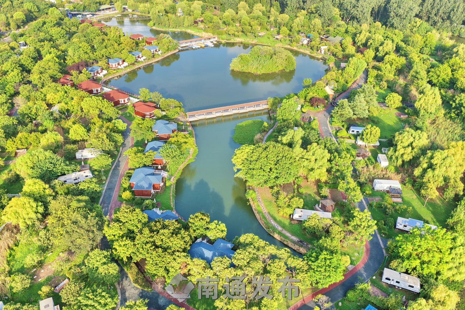 2025年7月28日在全国首批运动休闲特色小镇——江苏省南通市通州区五接镇拍摄的途居南通(开沙岛)房车露营地美丽景色。