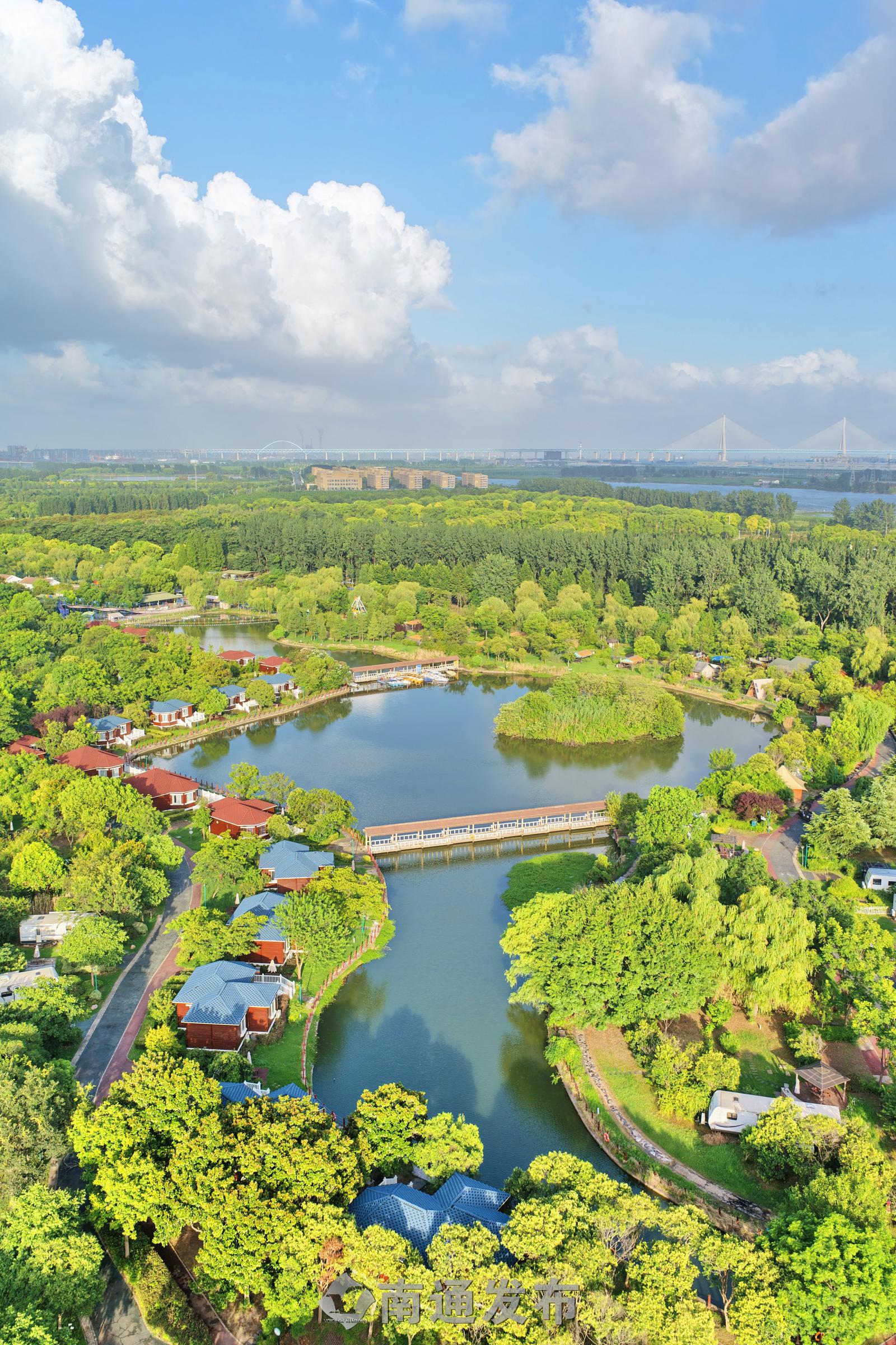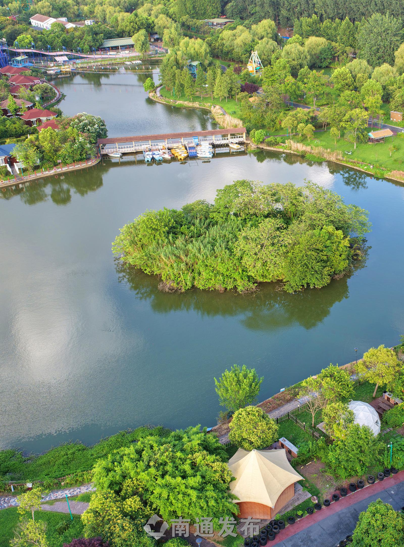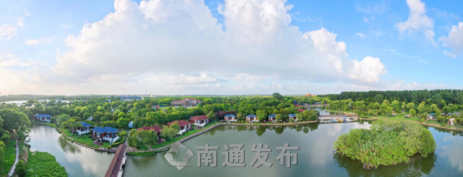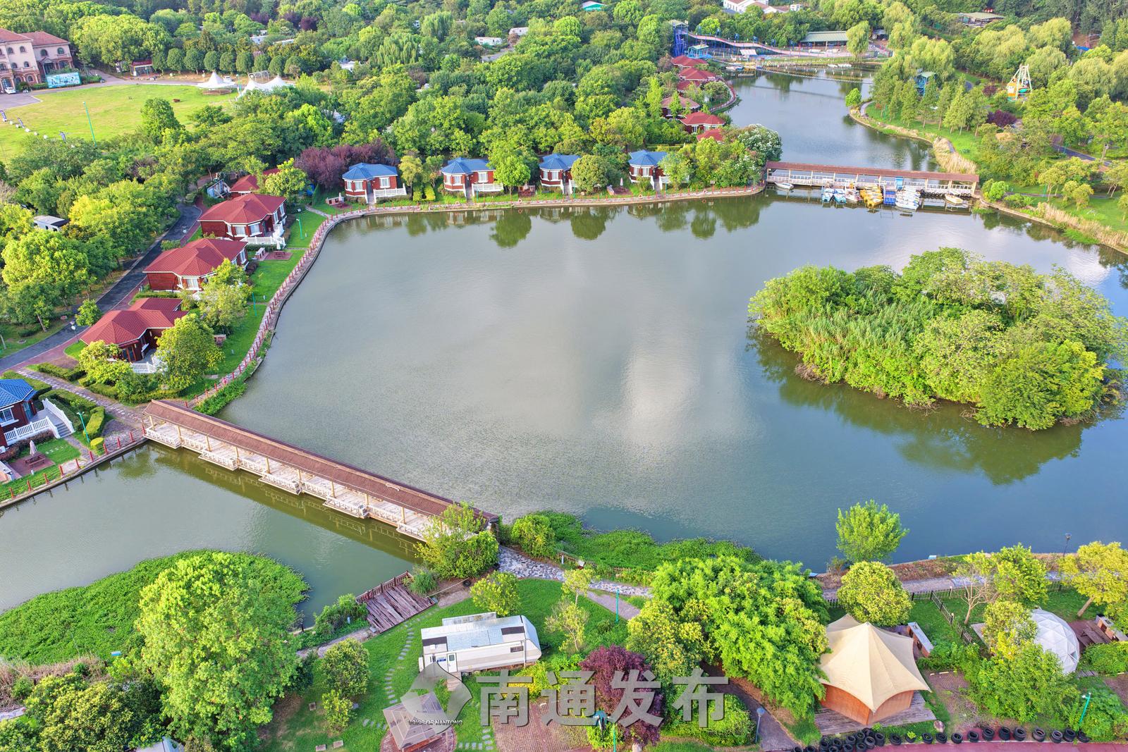 2025年7月28日在全国首批运动休闲特色小镇——江苏省南通市通州区五接镇拍摄的途居南通(开沙岛)房车露营地美丽景色。
