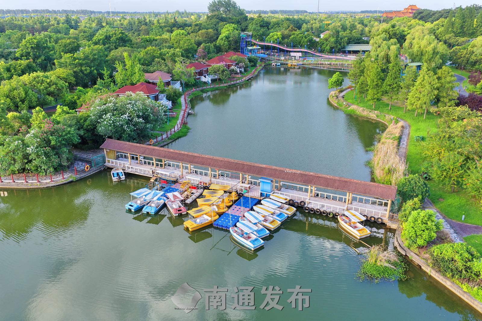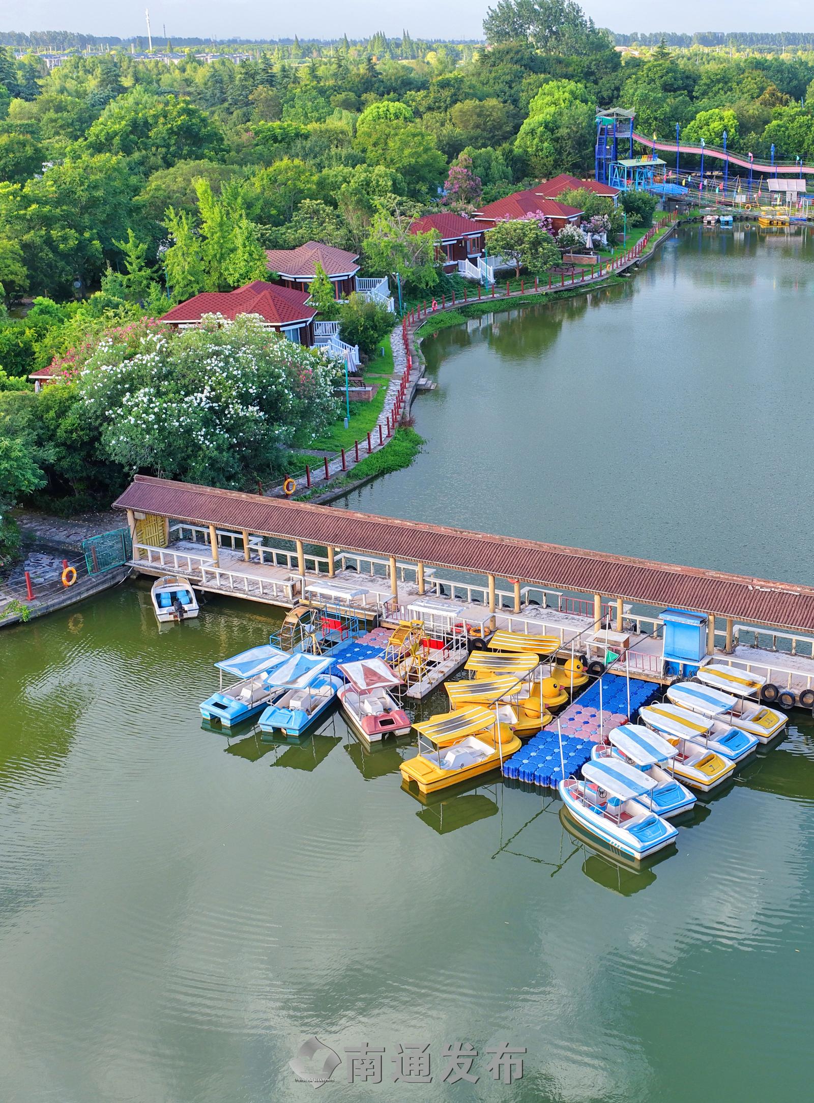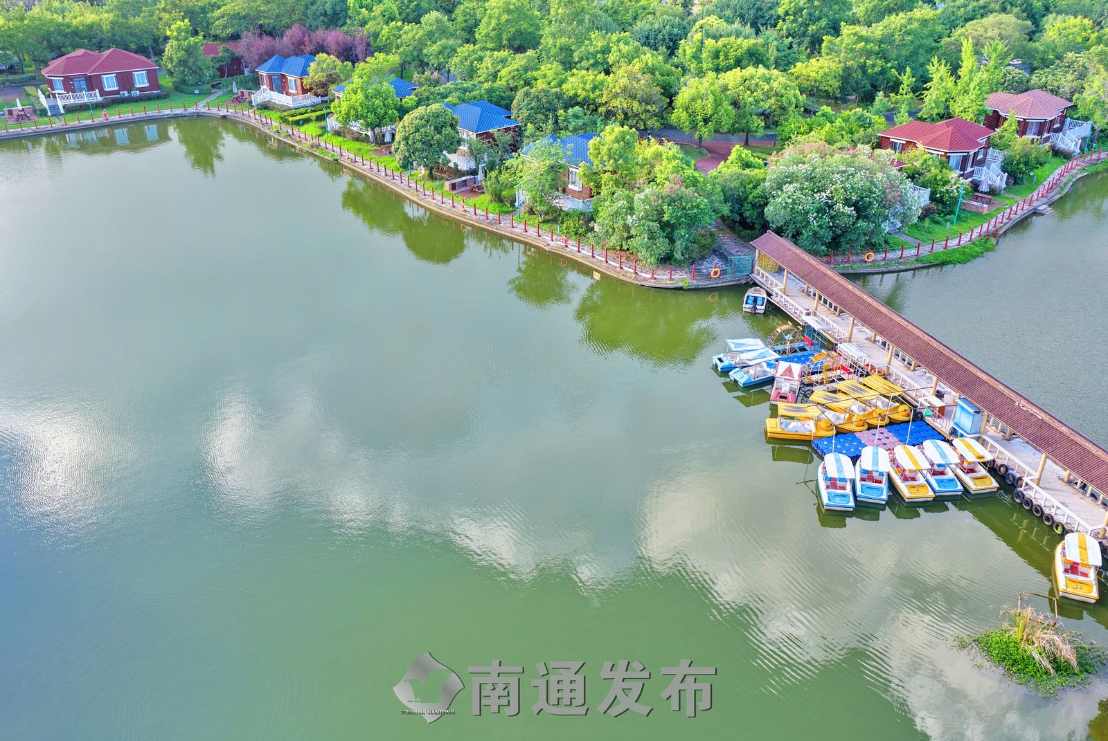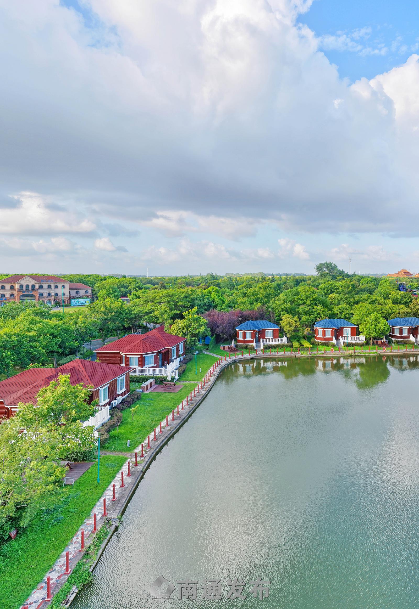 2025年7月28日在全国首批运动休闲特色小镇——江苏省南通市通州区五接镇拍摄的途居南通(开沙岛)房车露营地美丽景色。