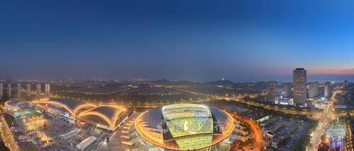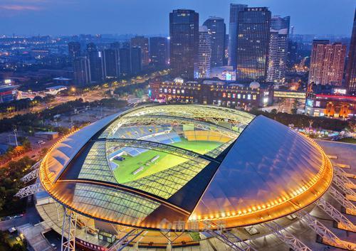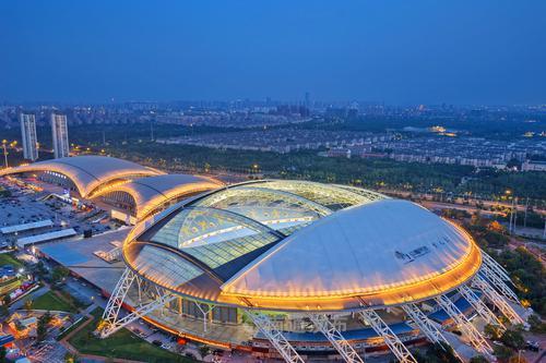 据了解, 南通体育会展中心被称为中国“南鸟巢”,是我国第一个采用巨型活动开启式屋盖的体育场馆,也是2006年江苏省十六运的主会场。