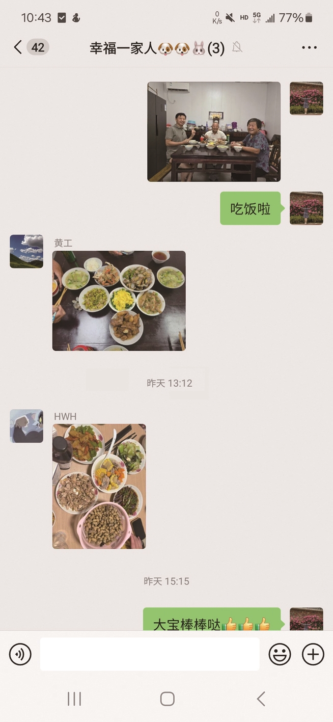 群里的消息从来没断过,我们说:你爷爷今天吃了两大块虎皮肉。儿子回:妈教的红烧肉秘方果然好用。我们晒:你奶奶种的小青菜炒着最香。他们发:楼下菜场买的玉米香得像老家的。