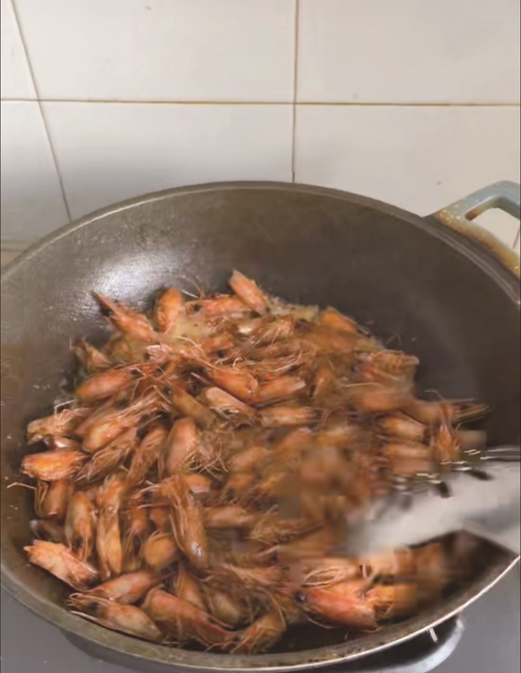 在她的指点下,我将虾头狠狠煸透,加水后烧开,听着“咕噜咕噜”的冒泡声,闻着扑鼻的香味,我的心快乐得都要飞起来。