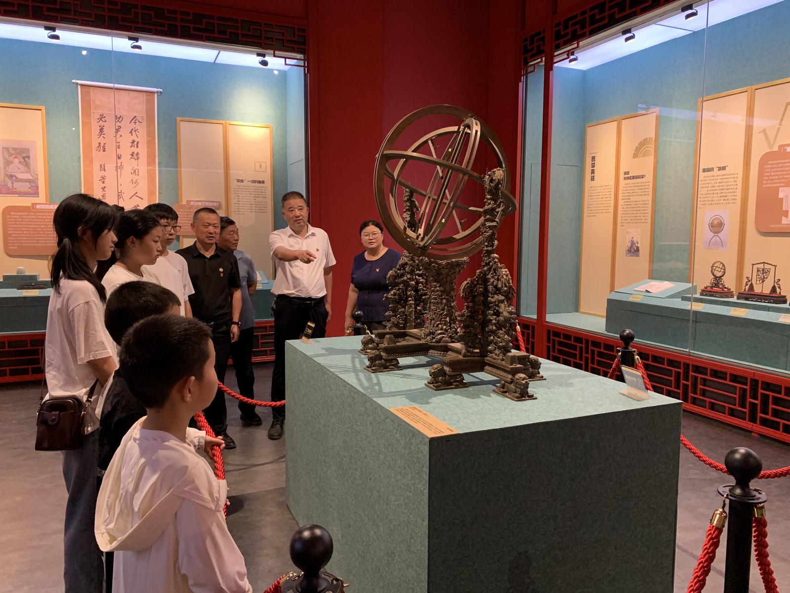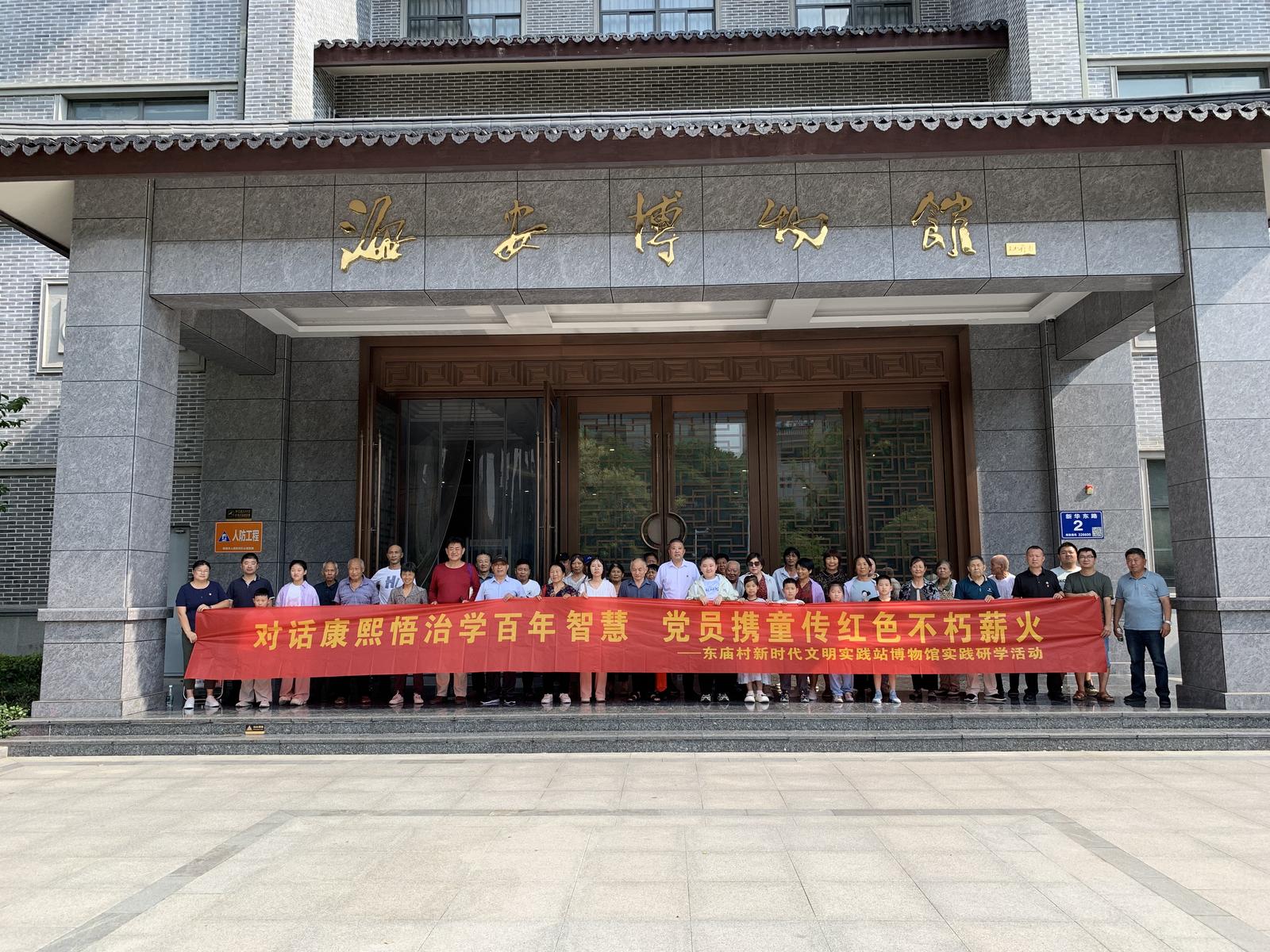 怀着对未来的无限向往,队伍随后走进了海安博物馆。在这里,参与者们开启了一场与先贤的“时空对话”,探寻城市梦想背后的历史与文化根基。借助馆内丰富的历史文物与翔实的文献资料,特别是与本地历史人文相关的展陈,党员同志们引导孩子们一同探究历史长河中的治学精神与智慧结晶。横幅所题“对话康熙悟治学百年智慧”,寓意深刻,并非特指清朝帝王,而是象征着引导孩子们与深厚的历史文化传统对话,感悟其中蕴含的严谨治学态度、求知探索精神以及历经时间沉淀的人生哲理。这种跨越百年的智慧洗礼,如春雨般滋润着孩子们的心田,让他们深刻理解了当下的繁荣源自一代代人的奋斗与积累。