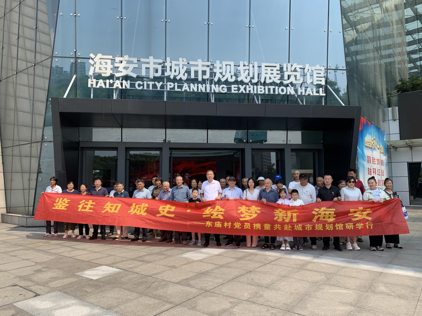为丰富青少年暑期生活,传承红色基因,启迪治学智慧,展望家乡发展蓝图,近日,海安高新区东庙村新时代文明实践站、东庙村关工委组织了一场别开生面的“鉴往知城史·绘梦新海安”主题研学活动。本村部分党员代表与青少年儿童携手同行,首先共赴海安市城市规划馆,随后前往海安博物馆进行参观学习,体验了一场从展望未来到回望历史、连接梦想与根基的文化实践之旅。