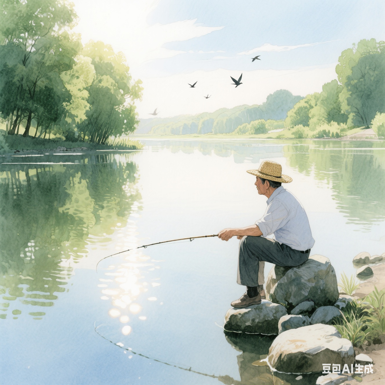 今晨醒来,推开阳台门,见父亲的白发在晨光中泛青。他正摆弄着碳素钓竿,保温杯里的枸杞浮浮沉沉。河湾早瘦成了水沟,老家的村庄也已拆迁,当年喊号子的叔伯们散在四方。我望着他手臂上随年龄松弛的皮肤,忽然想起那年冬天,我家院场上满地的银色的鱼儿……