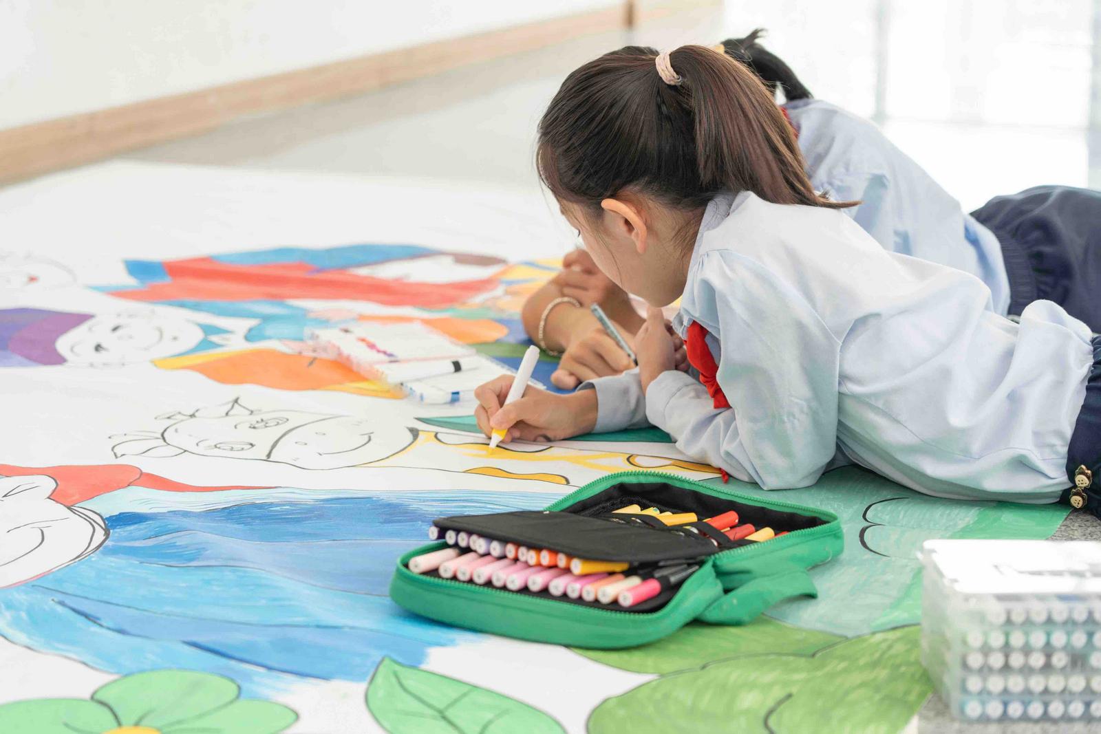 走廊上,一幅十米长的画卷上,不同年级的孩子们蹲在地上,手握彩笔,勾勒出眼中的美好世界,让善意有了具象的模样。在“彩绘善心”环节,同学们将画卷在舞台上铺展开来,扶老奶奶过马路,帮老人拎菜篮,给老爷爷理发……孩子们共同绘制的慈善图景就这样徐徐陈列出来。“慈善就像我们共同完成那幅画一样,每个人添一分色彩,就能汇成美好的力量。”如东县解放路小学学生郁徐睿说。