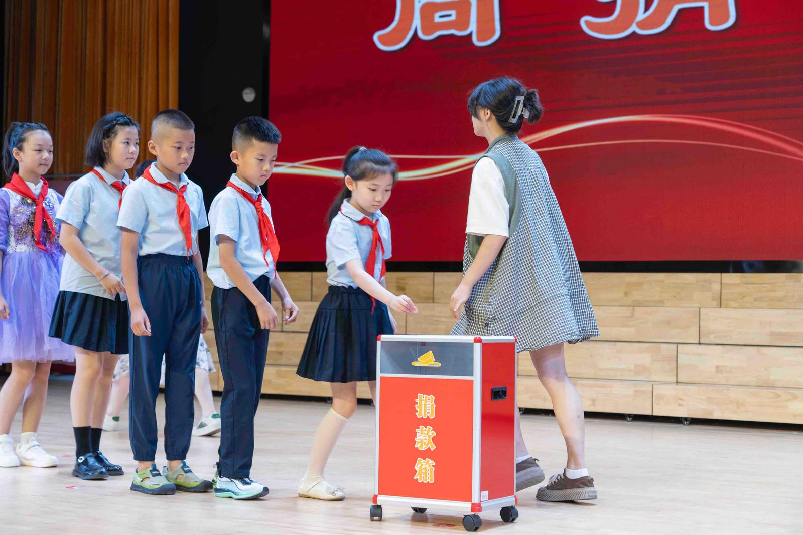 “小善举,大爱心。”在微光成炬环节,少先队大队委作为新时代好少年代表宣读同捐一元钱倡议书。在清脆的硬币碰撞声中,老师和学生们纷纷走向募捐箱,投进自己的一份爱心。“我觉得这不仅仅是一次捐款,更是同学们之间的举手之劳,感觉就是我们献出了这份爱心。”如东县解放路小学学生陶梓铭说。
