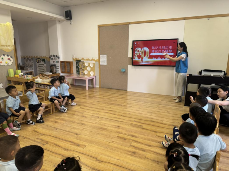 近日,工作人员还特意为孩子们准备了一场爱国主义启蒙教育。通过讲述英雄小故事、观看抗战视频、学唱红色儿歌等形式,工作人员用孩子们能够理解和接受的方式,回顾那段烽火岁月,讲述先辈们保家卫国的英勇事迹。虽然孩子们年纪尚小,但革命精神、爱国主义的种子已悄然播下,在他们清澈的眼神中,看到了对英雄的敬仰和对祖国的热爱。