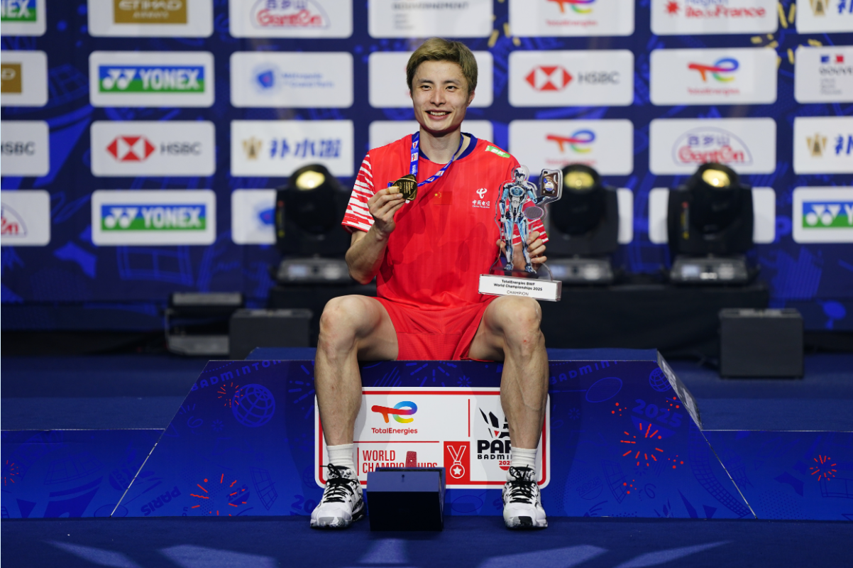 The Olympic Games and the BWF World Championships are the two top events in international badminton. In the past, Shi Yuqi won the Thomas Cup and Sudirman Cup team world championships six times. Now he has successfully won the singles championship in the BWF World Championships, marking a new breakthrough in his sports career.