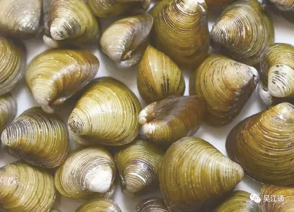 到吴江芦墟二连襟老龚家。水池里一大盆黄蚬,饱满而清亮。一早菜场上买来的,六元钱一斤。原来,吴江的白蚬湖盛产蚬子。中午吃饭,韭菜莛子、毛豆子炒黄蚬肉,味道很鲜美。