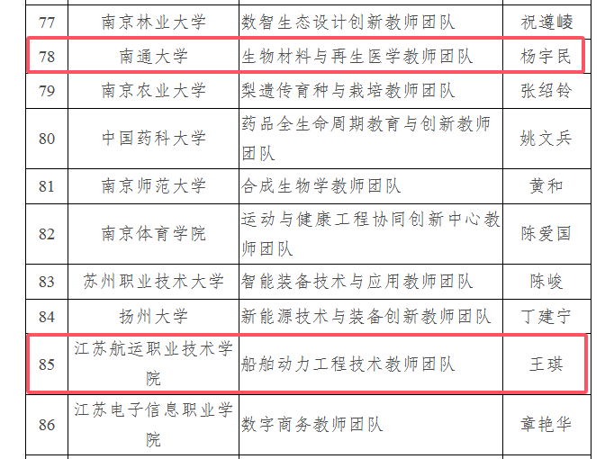 近日,教育部公布第四批“全国高校黄大年式教师团队”创建示范活动入围名单。我市南通大学生物材料与再生医学教师团队、江苏航运职业技术学院船舶动力工程技术教师团队榜上有名。
