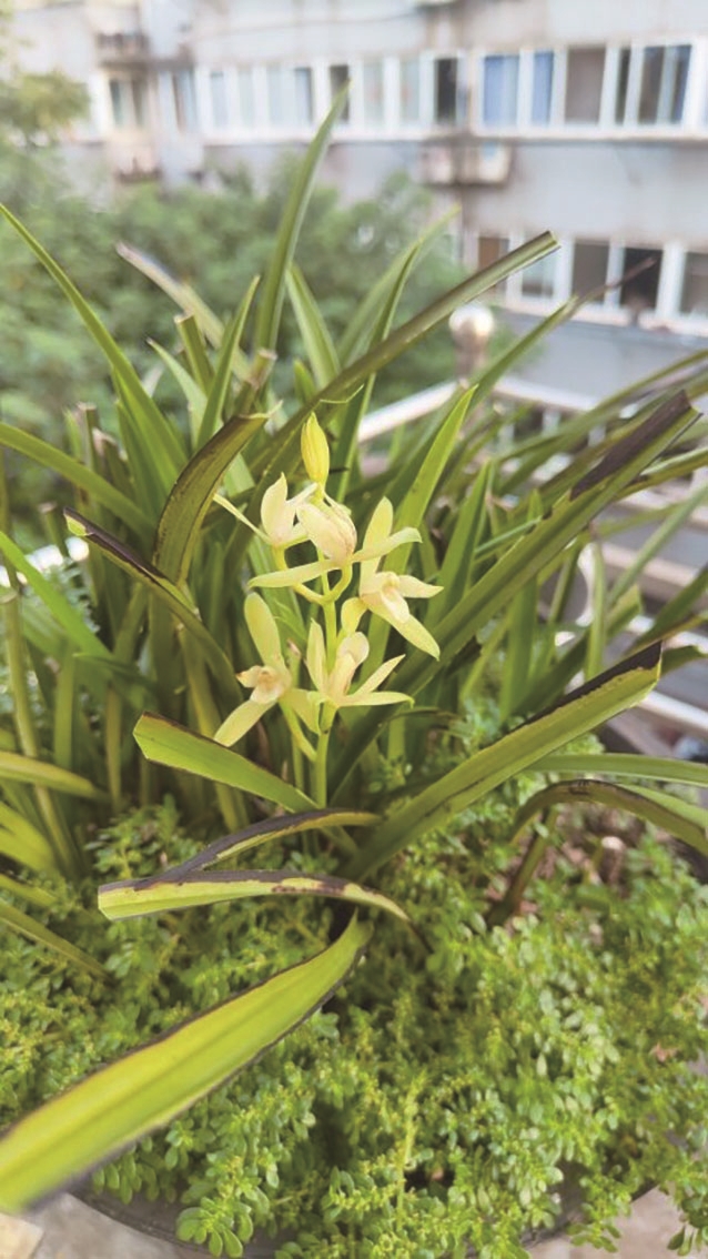 今晨起床,走到阳台惊喜地发现建兰开花了。花葶挺拔、花朵秀丽、花香幽雅,尽显君子气质。叶片翠绿,花色淡黄,为酷热带来一片清凉。这感觉真爽。难怪兰花能成为文人笔下的常客。