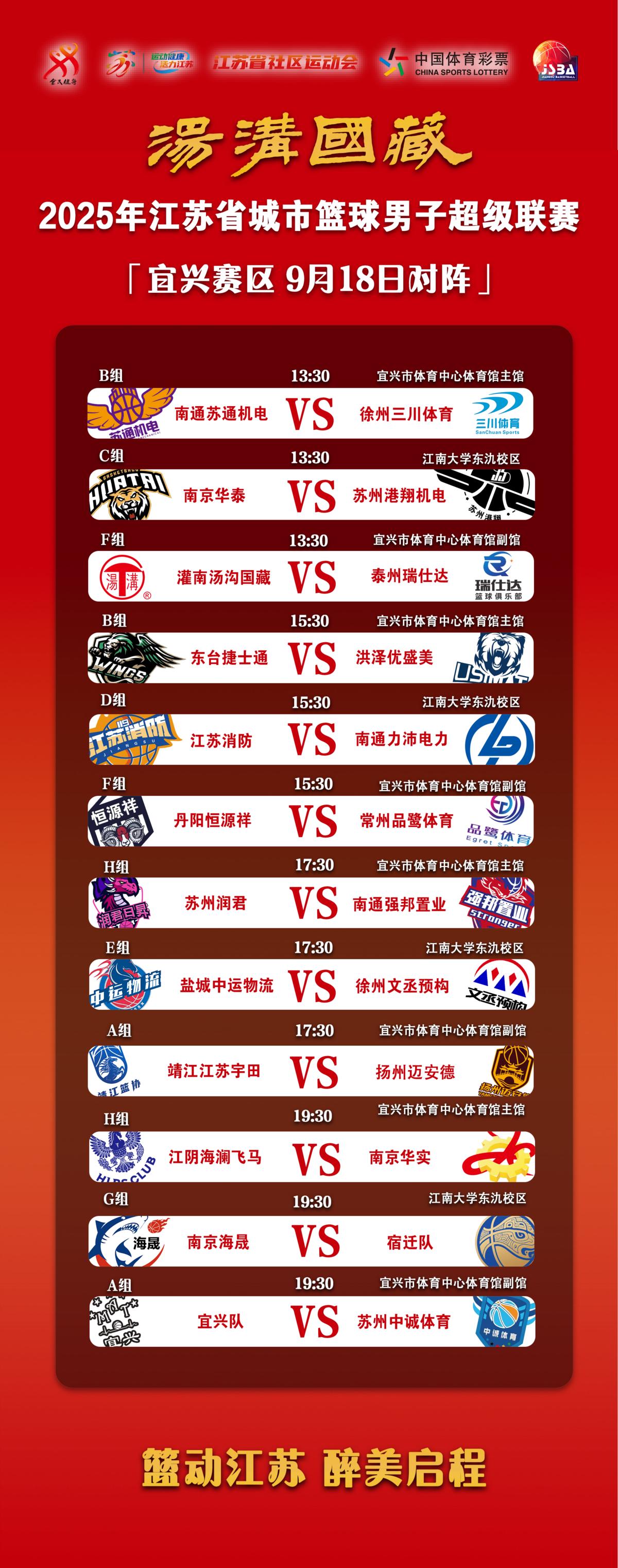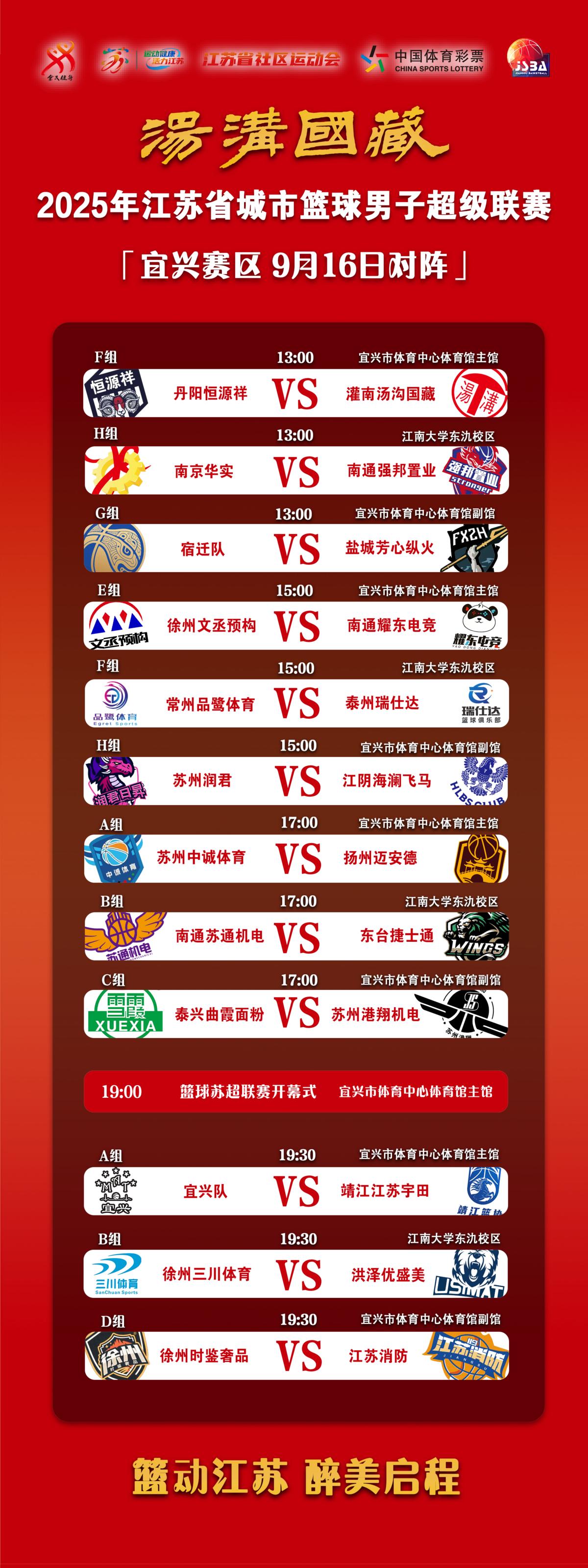 篮球“苏超”联赛由江苏省体育局、江苏省体育总会主办,江苏省篮球运动协会承办,汤沟酒业独家冠名赞助。2025年篮球“苏超”共有28支球队报名参赛,来自全省13个设区市的篮球俱乐部和企事业单位。联赛分为两个阶段:9月16日—21日为第一阶段,该阶段将产生四强队伍,比赛地点在无锡宜兴;10月2日—3日为第二阶段,前四强队伍将在连云港灌南角逐冠军。