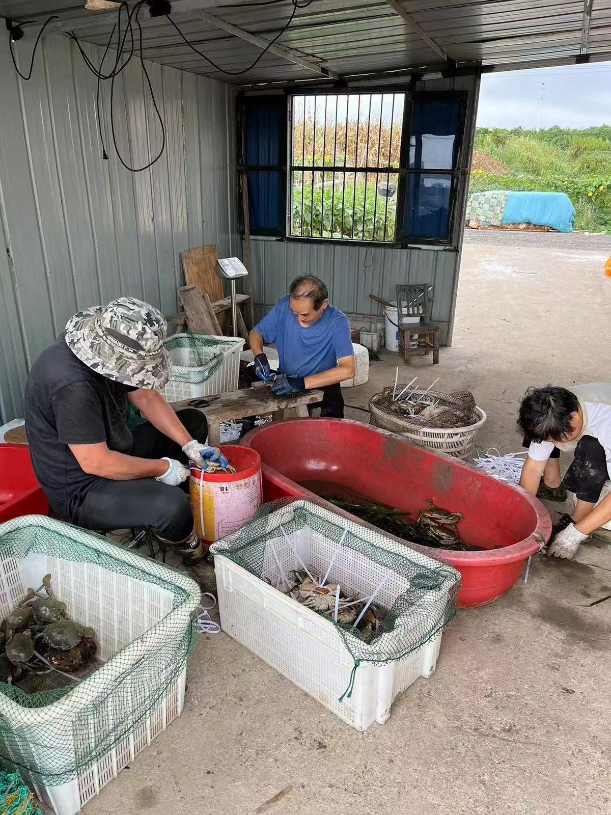 养成了名贵青蟹,但本土消费尚未建立,浙、闽商贩又因总量偏少不愿上门收购。张义春先是动员周边10户养殖户抱团养殖,来年再通过公司大力推广。“从一口塘到万亩塘,养殖户们眼见为实,纷纷效仿。”张义春说,“长江口青蟹很快传名声,亮品牌,加之青蟹上市恰逢中秋、国庆,前年起,各路客商云集而来。时下,单只重半斤以上青蟹塘口收购价超55元。”