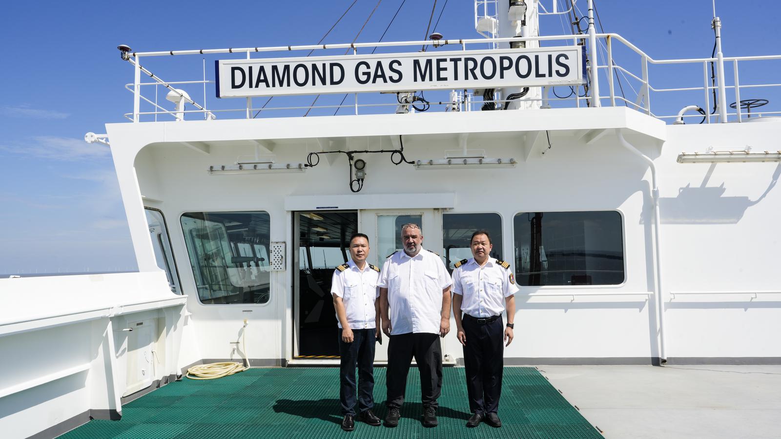 本次到港的“DIAMOND GAS METROPOLIS”轮,载运LNG约6.8万吨(折合15万立方米)。据测算,1立方米天然气约可发电5.5度,15万立方米LNG发电可满足1600万户家庭近3.5个月的用电需求。