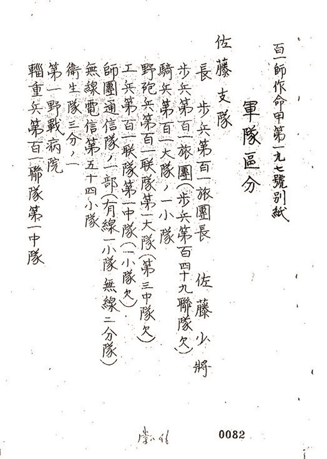 日军101师团关于组成登陆南通之“佐藤支队”的命令。