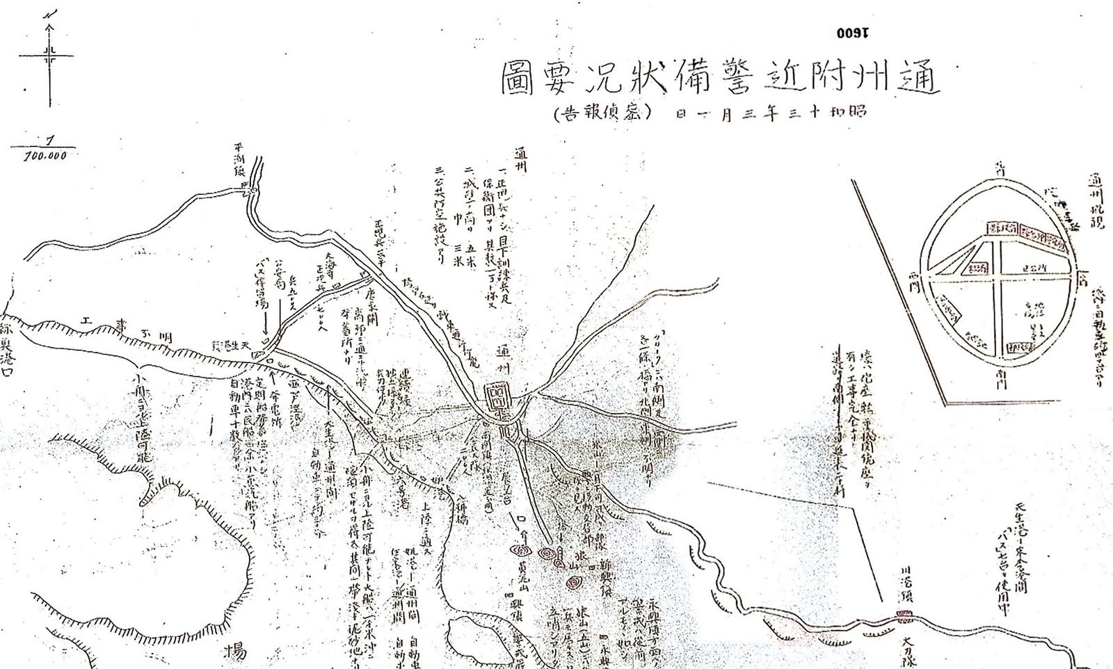 日军绘制的《通州附近警备状况要图》(1938年3月1日)