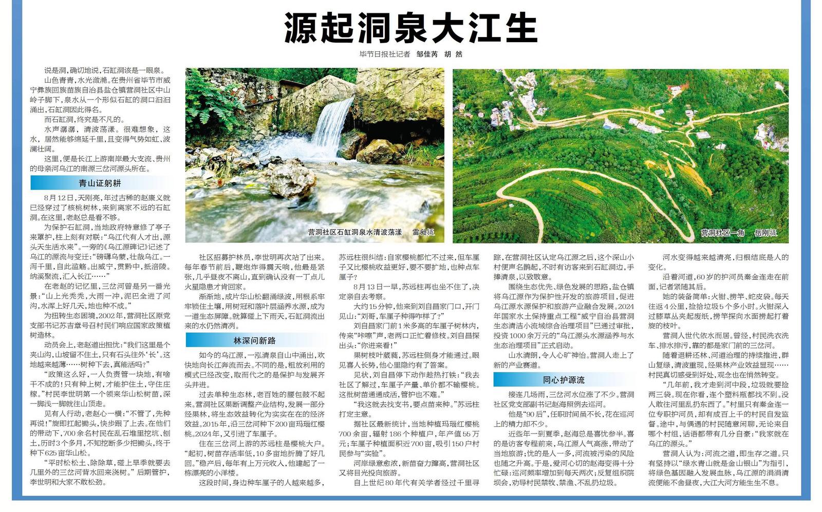 营洞人认为:河流之道,即生存之道。只有坚持以“绿水青山就是金山银山”为指引,将绿色基因融入发展血脉,乌江源的涓涓清流便能不舍昼夜,大江大河方能生生不息。