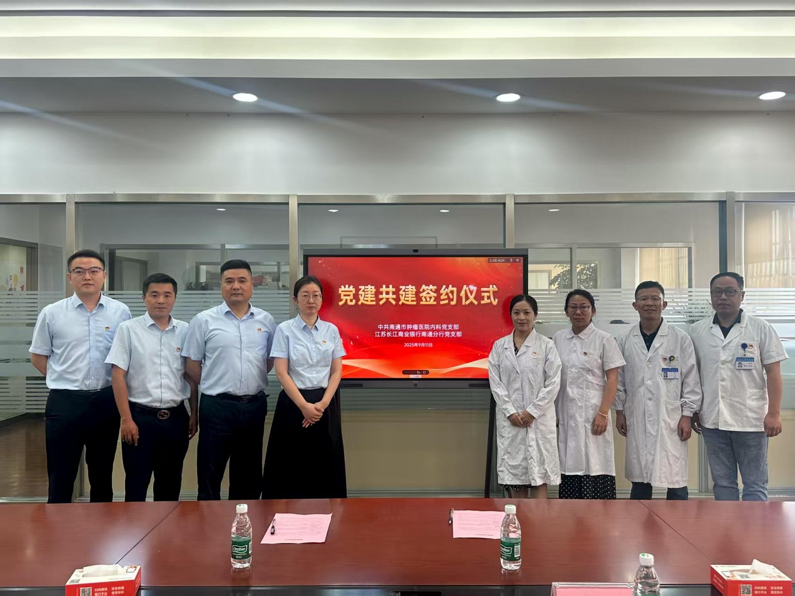 当天,江苏长江商业银行南通分行党支部与南通市肿瘤医院内科党支部正式签订了《党建共建协议书》,双方约定未来将通过组织共建、活动共联、资源共享等方式,持续深化合作,积极探索党建引领与多元服务的新路径,持续为群众更优质、更全面的服务,共同推动适老服务与社会公益事业的创新发展。