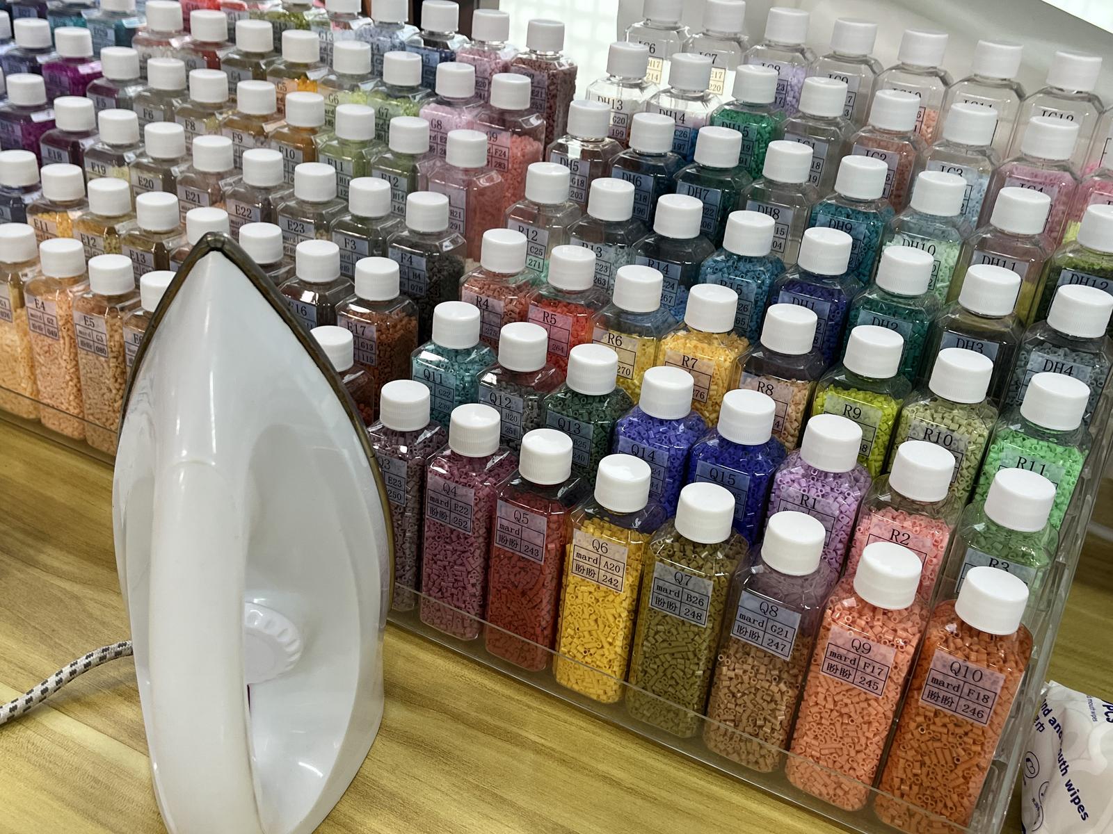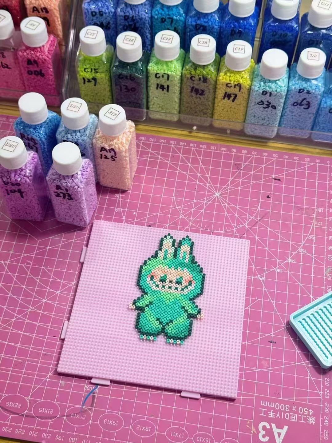 别看一颗豆子很小,但目前市面上销售的拼豆质量却天差地别,同时,因为尚未形成相应规范,消费者购买时需要自行区分商家所选用的不同材质。宋丹丹说,拼豆主要分“融合豆”和俗称的“义乌豆”——前者大小均匀、熔点一致,熨烫后能完美融合,实现“无孔”的细腻效果;后者则常因大小不一、熔点参差不齐,导致成品边缘毛躁,甚至熨烫时“糊成一团”。她解释,“不是说义乌产的豆子都不好,只是‘义乌豆’成了劣质豆的统称,新手踩坑很常见,建议先从性价比较高的少量融合豆试手。”