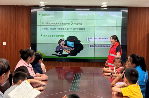 活动现场,志愿者以动画短片为切入点,用孩子们熟悉的“佩奇”等卡通形象举例,生动讲解“什么是网络陷阱”“如何辨别不良信息”“陌生人索要家庭信息怎么办”等关键问题。针对“沉迷游戏充值”“点击不明链接”等常见风险,志愿者通过情景模拟互动——让孩子扮演“拒绝陌生人好友请求”的小卫士,家长扮演“发送可疑链接的陌生人”,在角色扮演中引导孩子学会说“不”。课堂上还设置了“网络安全知识抢答”环节,孩子们踊跃举手,在轻松氛围中掌握了网络安全防护要点。
