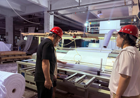 “安全通道必须保持畅通,灭火器要定期检查压力值!”在南通铭錱纺织有限公司生产车间,王龙妹正带领安全专家进行“体检式”排查。她采用“三查三问”工作法:查设备运行状态、查消防设施配备、查应急预案落实;问员工操作规范、问安全培训频次、问隐患整改情况。针对发现的“安全出口标识模糊”问题,她当场督促企业负责人限期整改。在金秋弹性织物(海安)有限公司,她发现部分新员工未佩戴防护手套,立即协调企业开展“安全操作微课堂”,确保安全意识入脑入心。