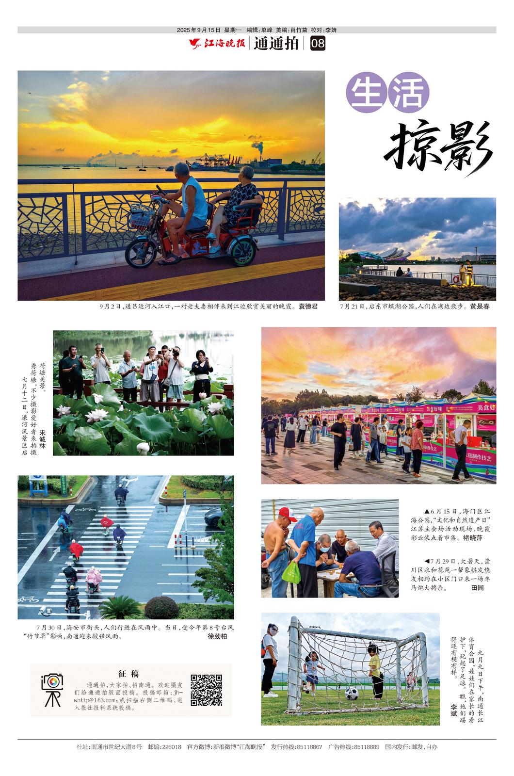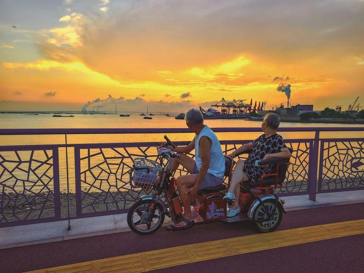 9月2日,通吕运河入江口,一对老夫妻相伴来到江边欣赏美丽的晚霞。 袁德君
