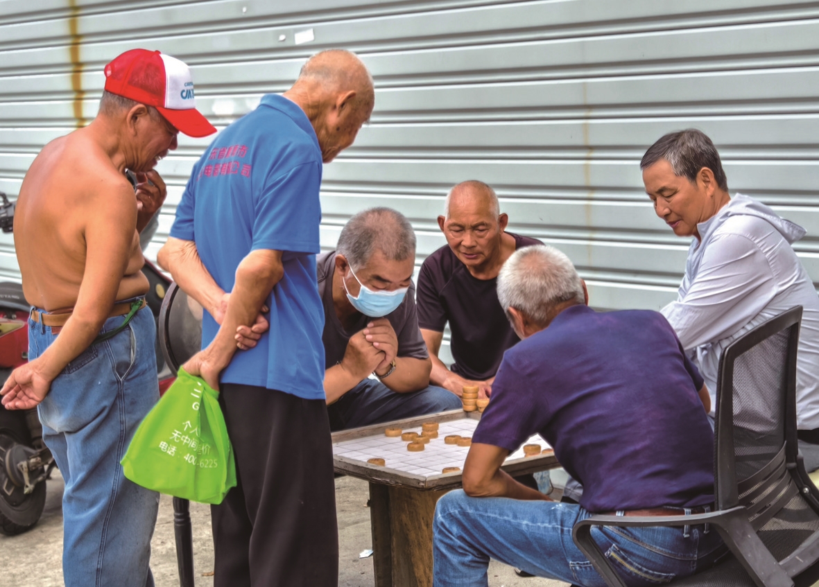 7月29日,大暑天,崇川区永和花苑一帮象棋发烧友相约在小区门口来一场车马炮大搏杀。 田园