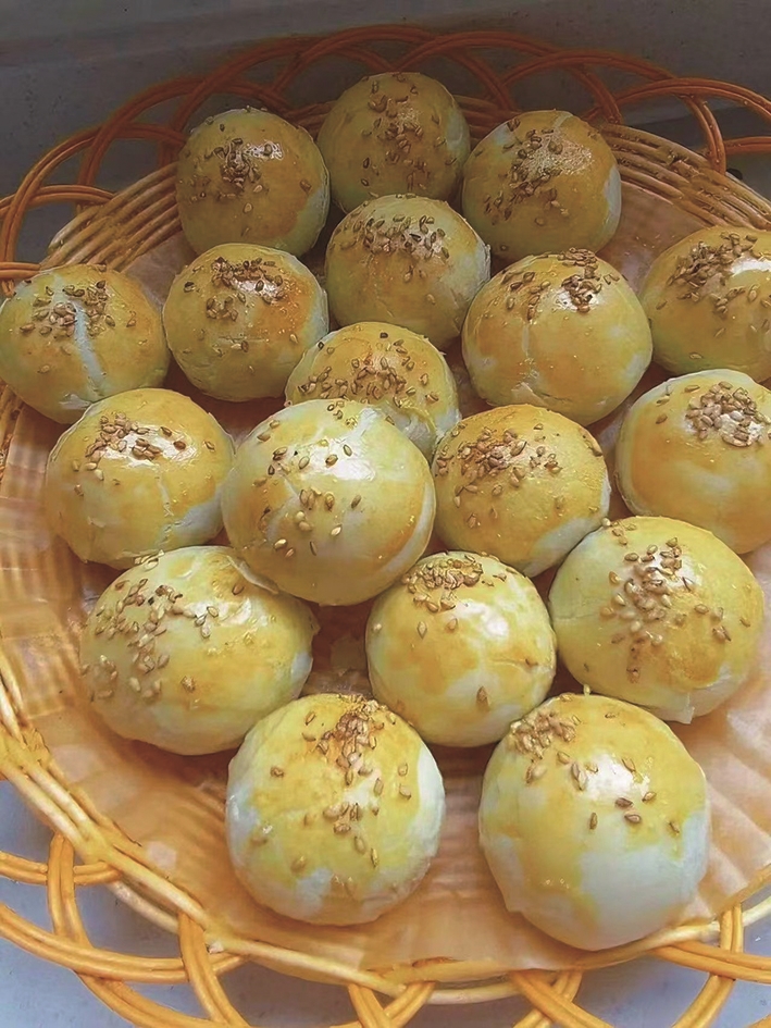挂了电话,厨房的阳光正好。揉油皮时,黄油在面粉里渐渐化开,掌心沾着温润的粉,像触到了母亲当年揉面的手。小时候她做点心,父亲总蹲在灶边,把剥好的核桃递过去,说:“多搁点,给孩子们补补脑子。”如今我挑咸蛋黄,想起母亲教的:“要选那层膜完整的,烤出来才流油。”